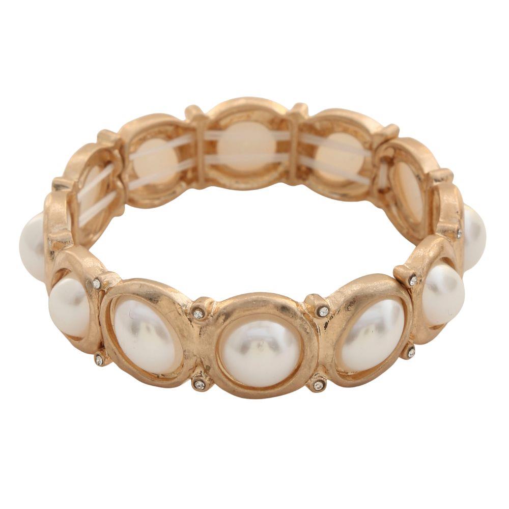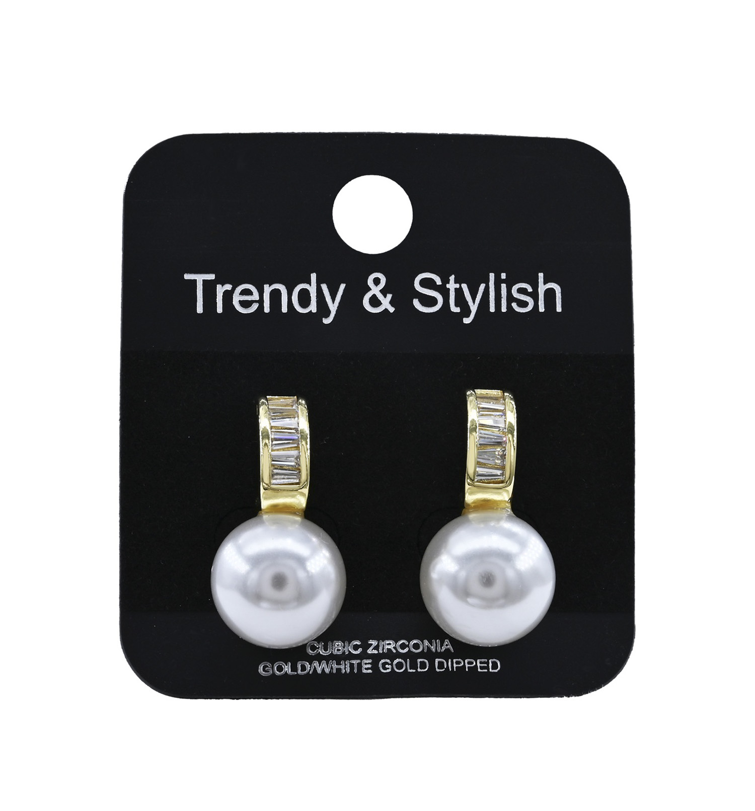 BAGUETTE CZ PEARL BEAD GOLD DIPPED EARRING