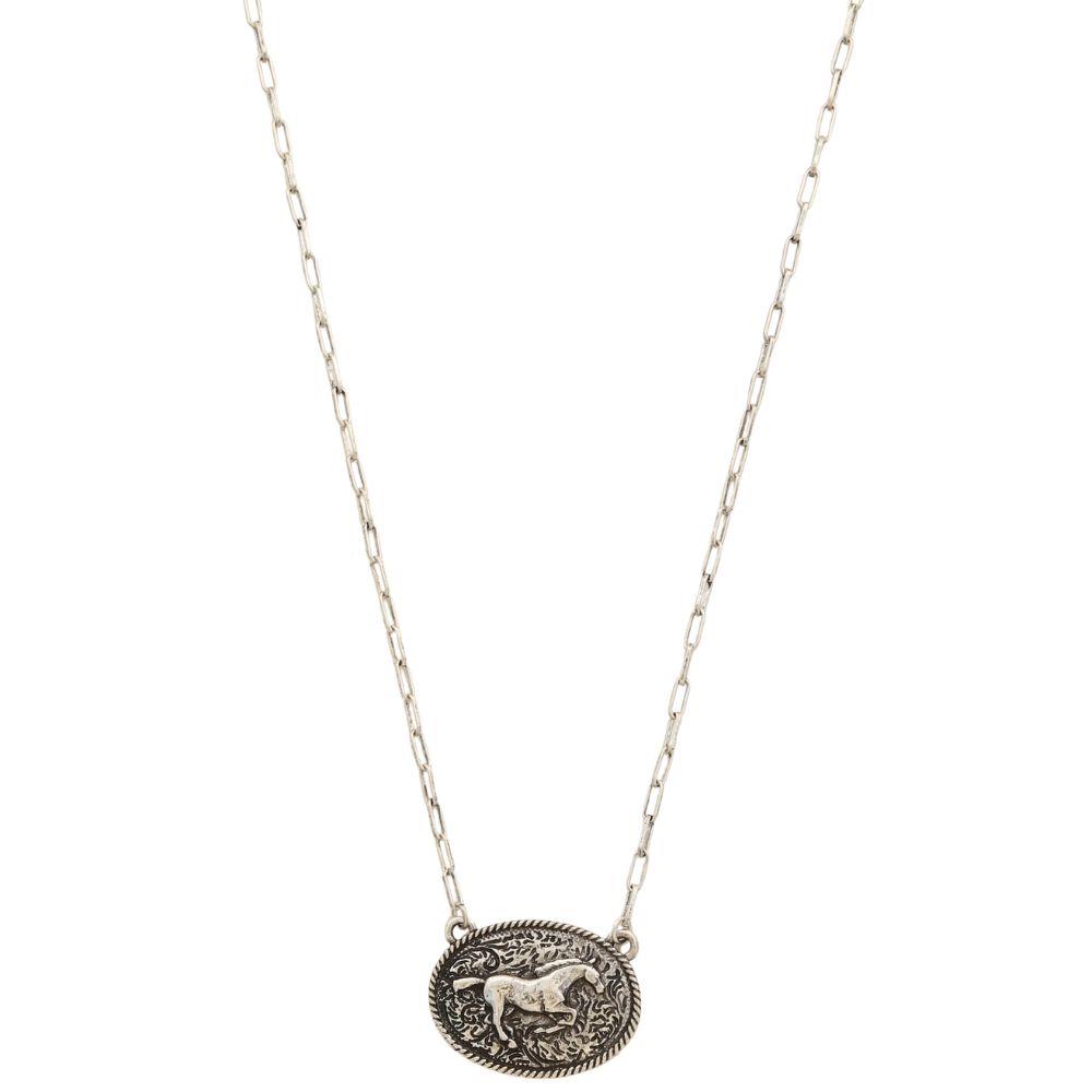 WESTERN HORSE CONCHO PENDANT METAL NECKLACE
