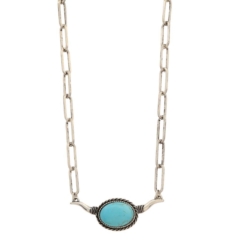 WESTERN TURQUOISE BEAD CATTLE HORN PENDANT NECKLACE