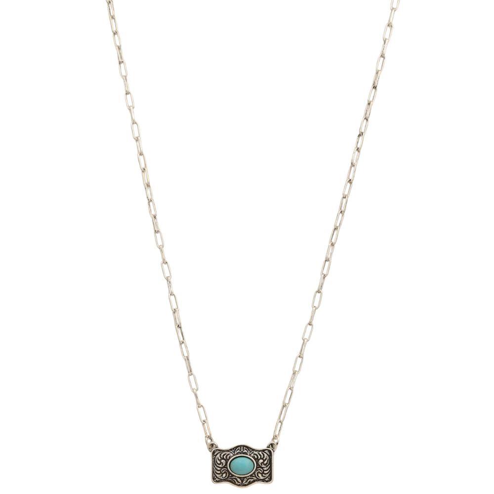 WESTERN BUCKLE CHARM METAL NECKLACE