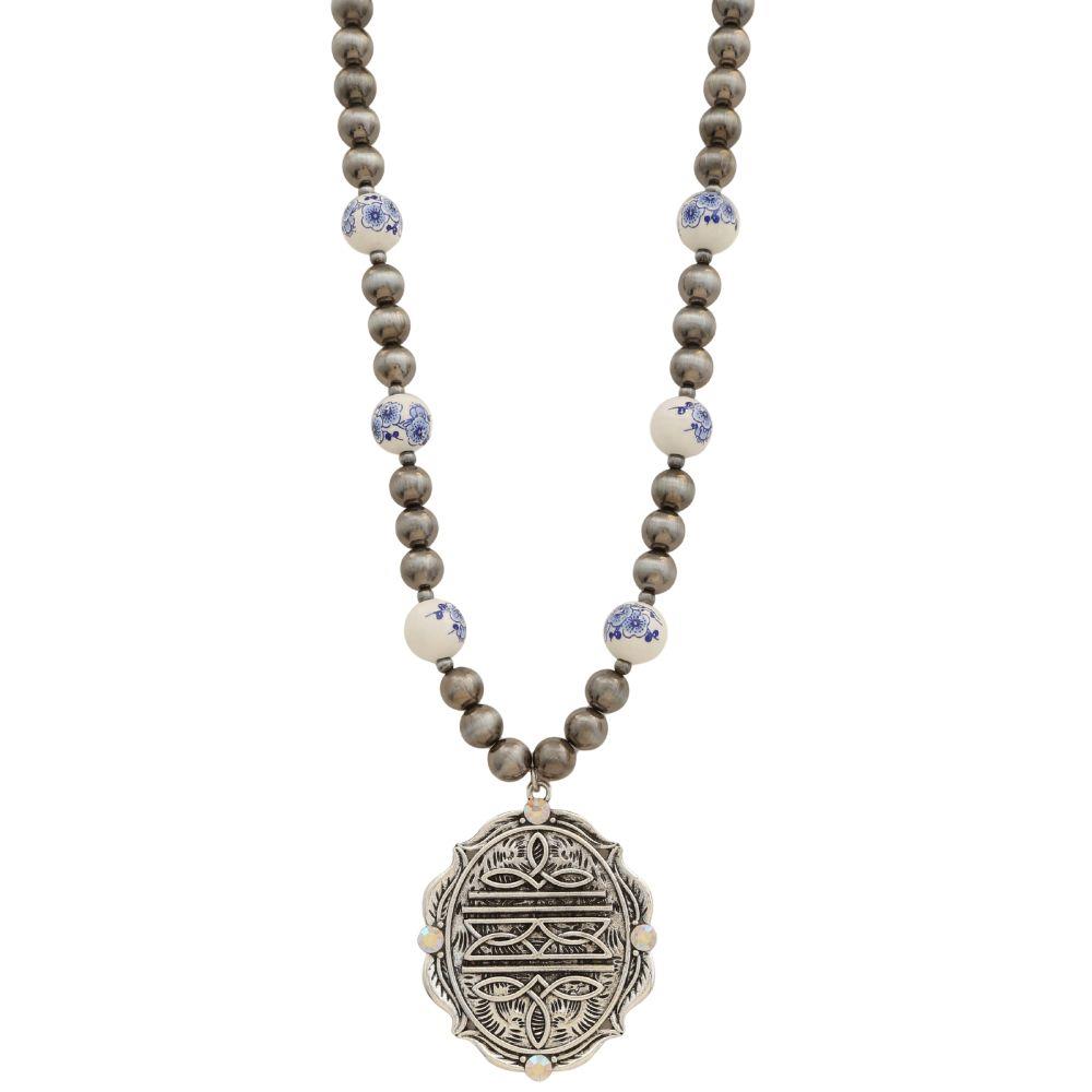 WESTERN PENDANT CERAMIC BEADED NECKLACE