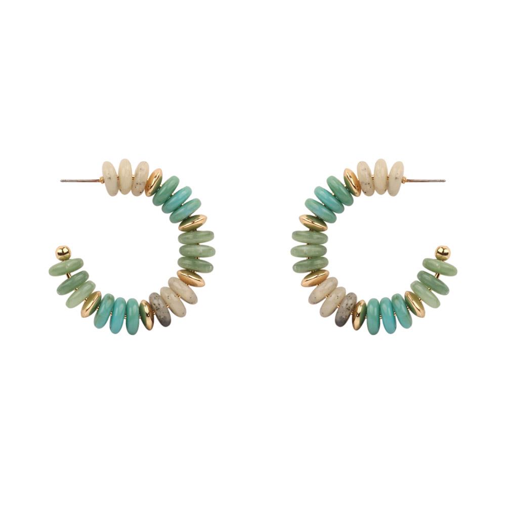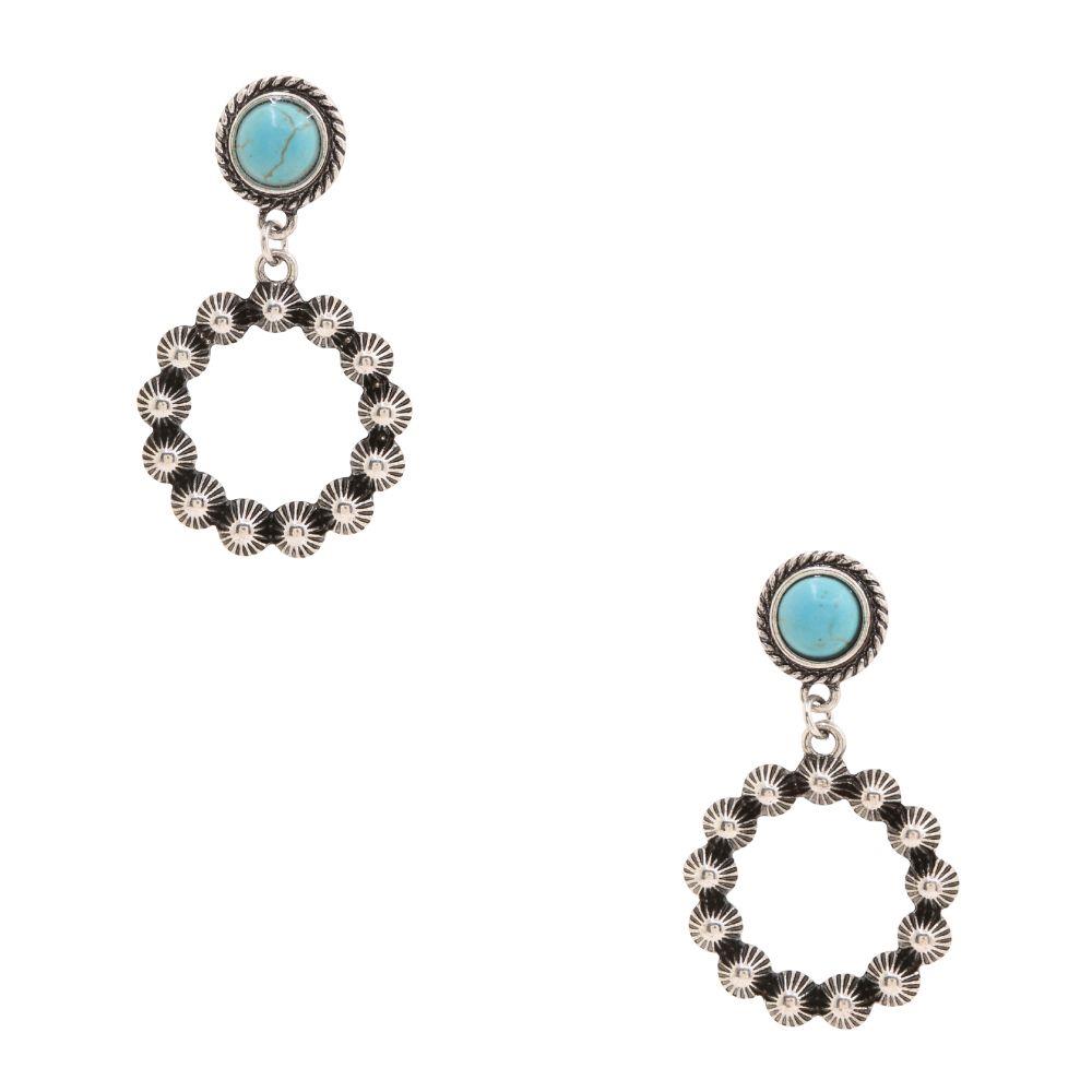 TURQUOISE BEAD ROUND METAL DANGLE EARRING