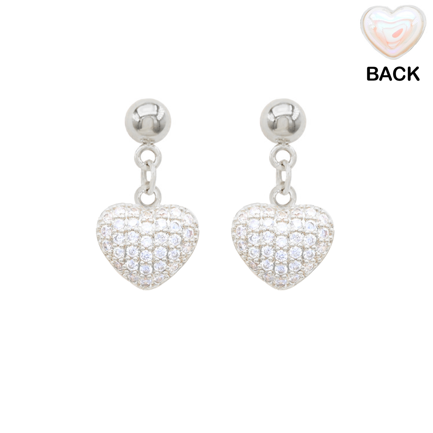 HEART CZ PEARL BEAD STAINLESS STEEL EARRING