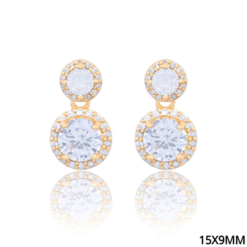 TWO TIERED ROUND CZ GOLD DIPPED EARRING