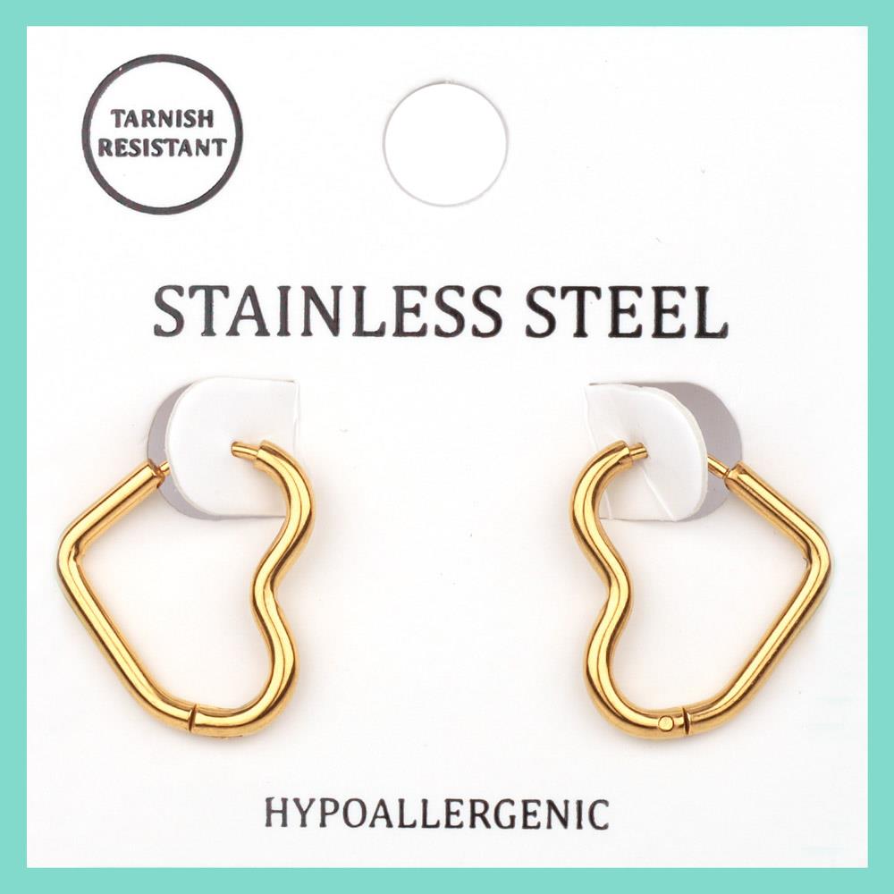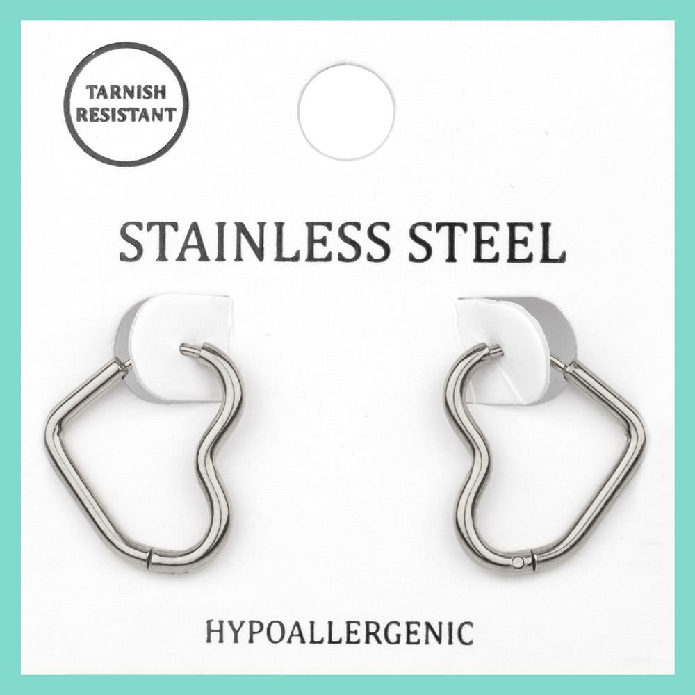 METAL STAINLESS HEART HOOP HUGGIE EARRING