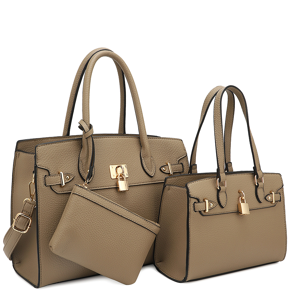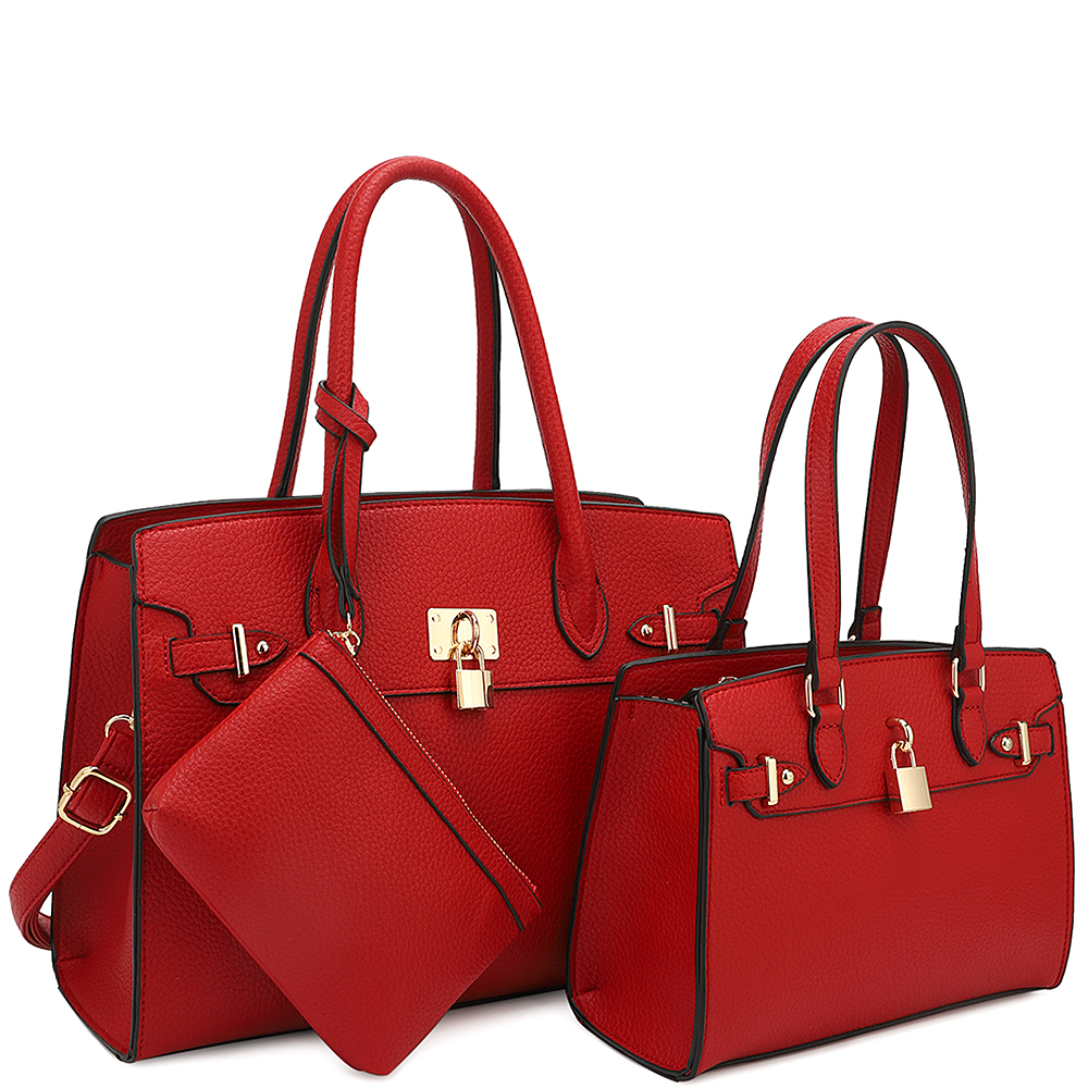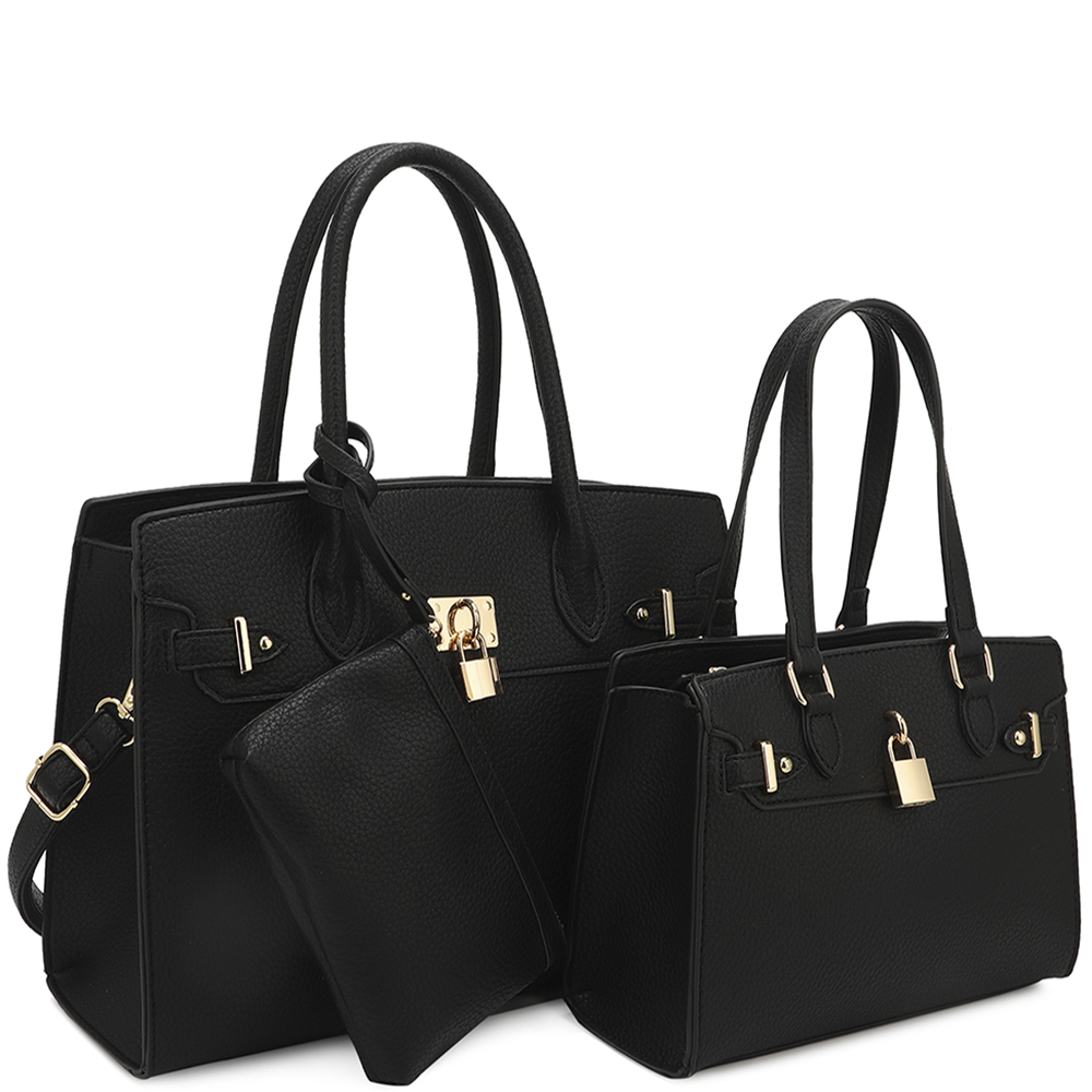 3IN1 TEXTURED DESIGN SATCHEL W MATCHING BAG AND CLUTCH SET