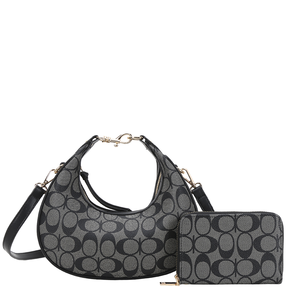 2IN1 OVAL PRINT SATCHEL W WALLET SET