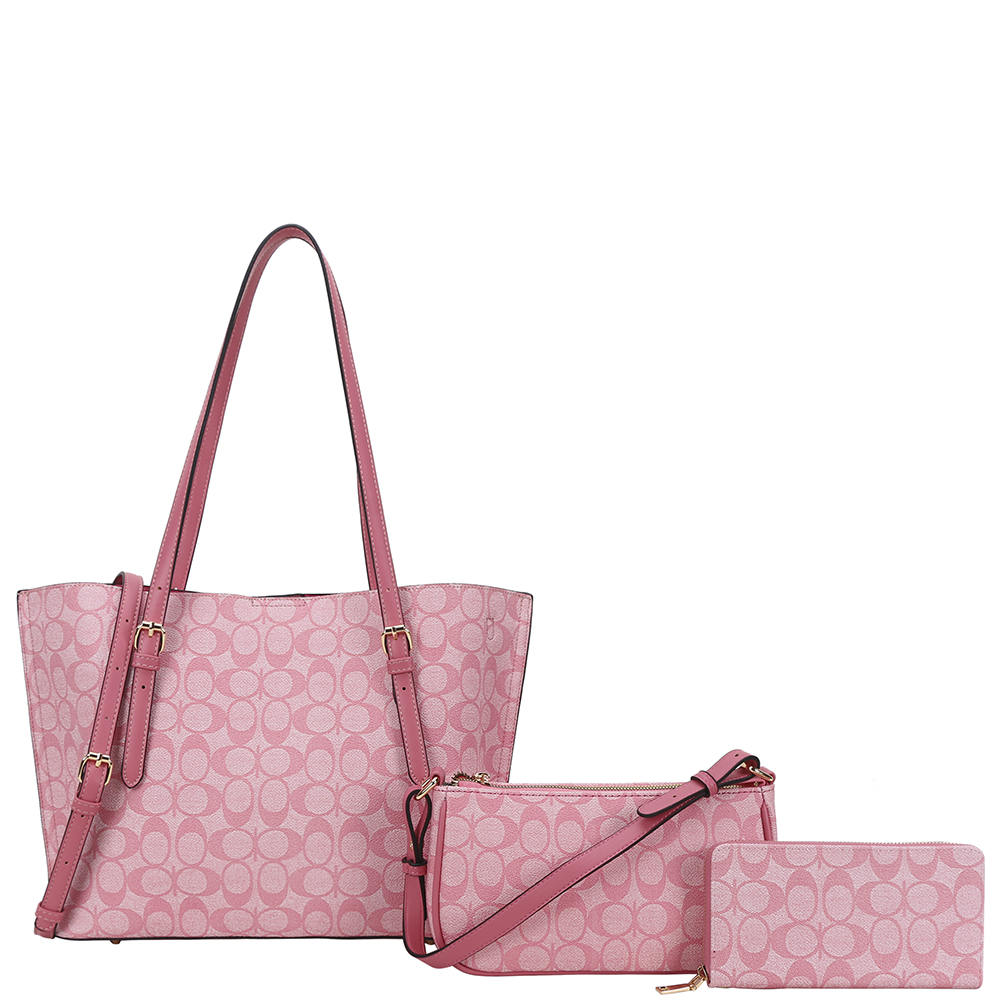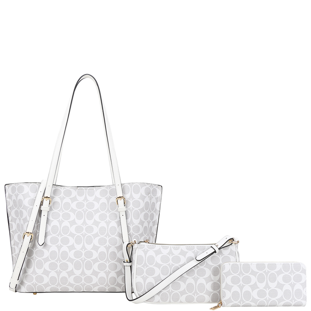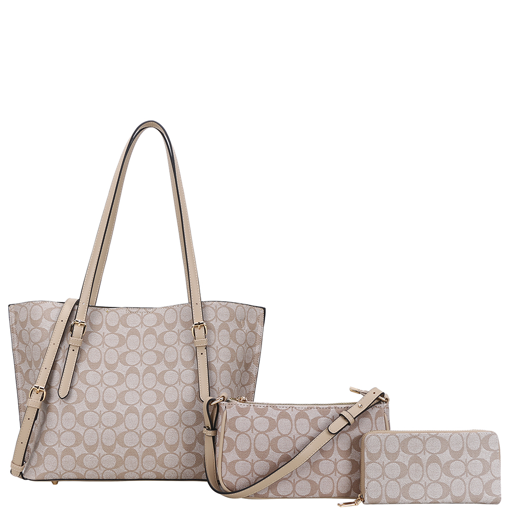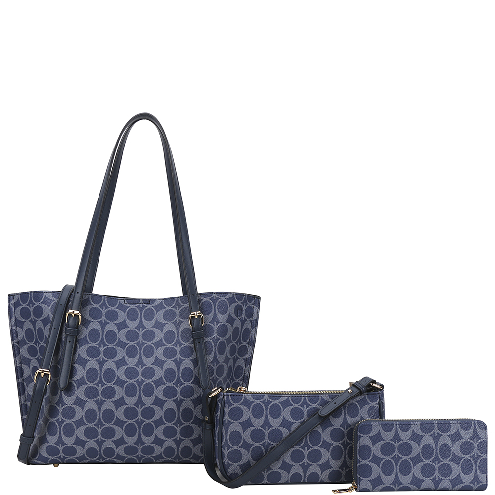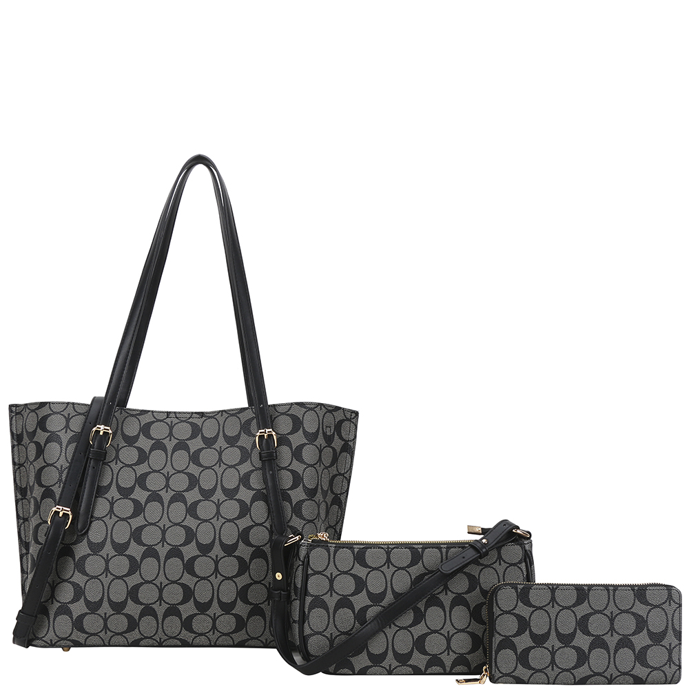 3IN1 OVAL PRINT SHOULDER TOTE BAG W CROSSBODY AND WALLET SET