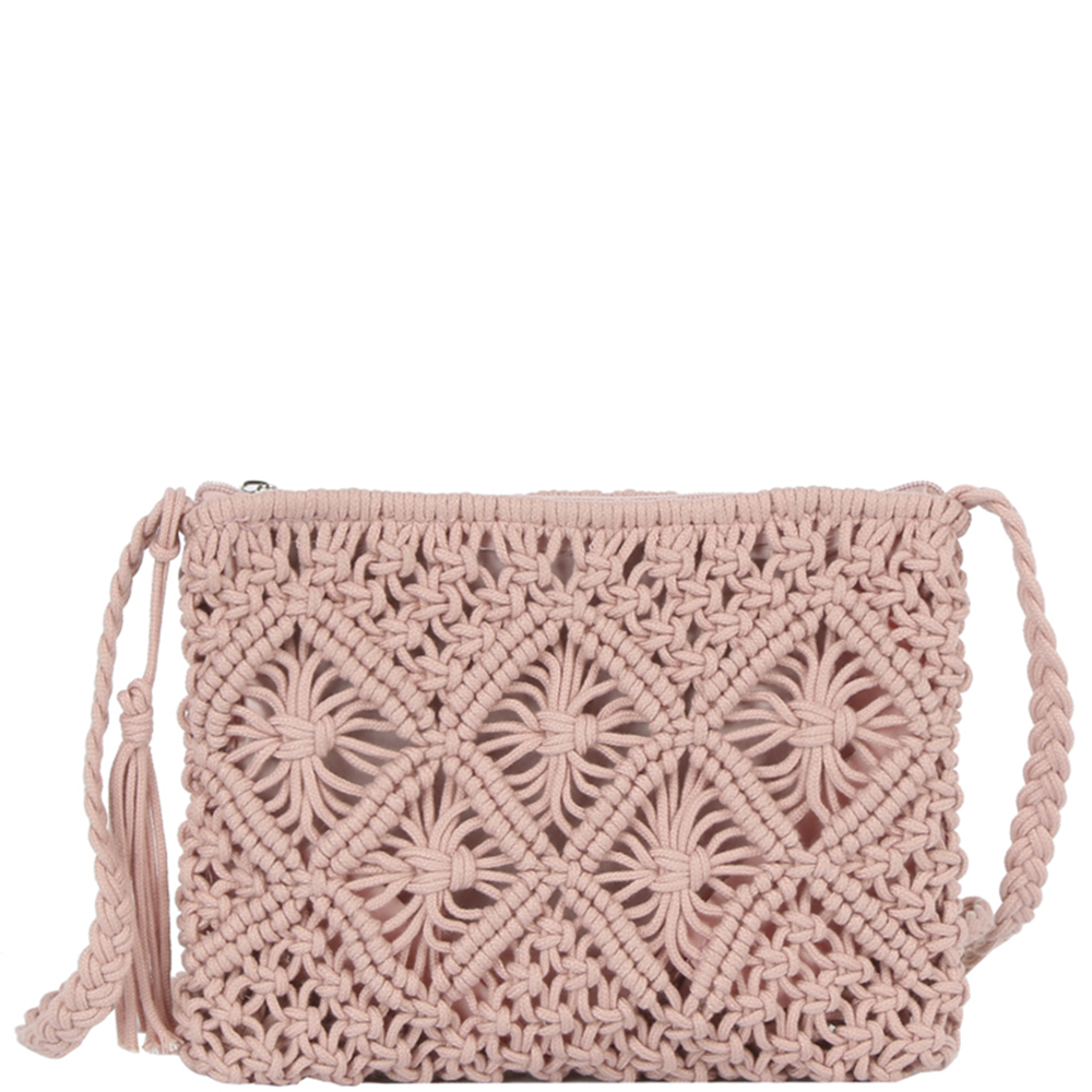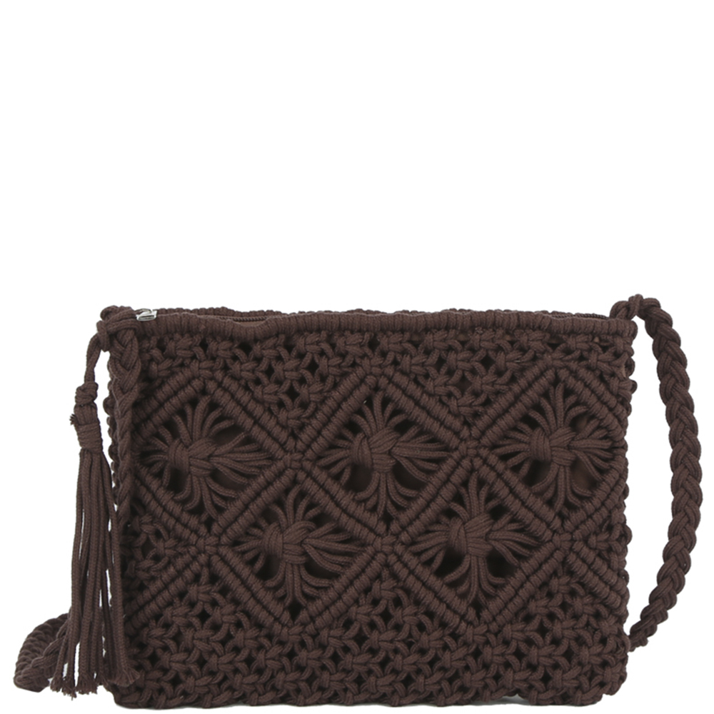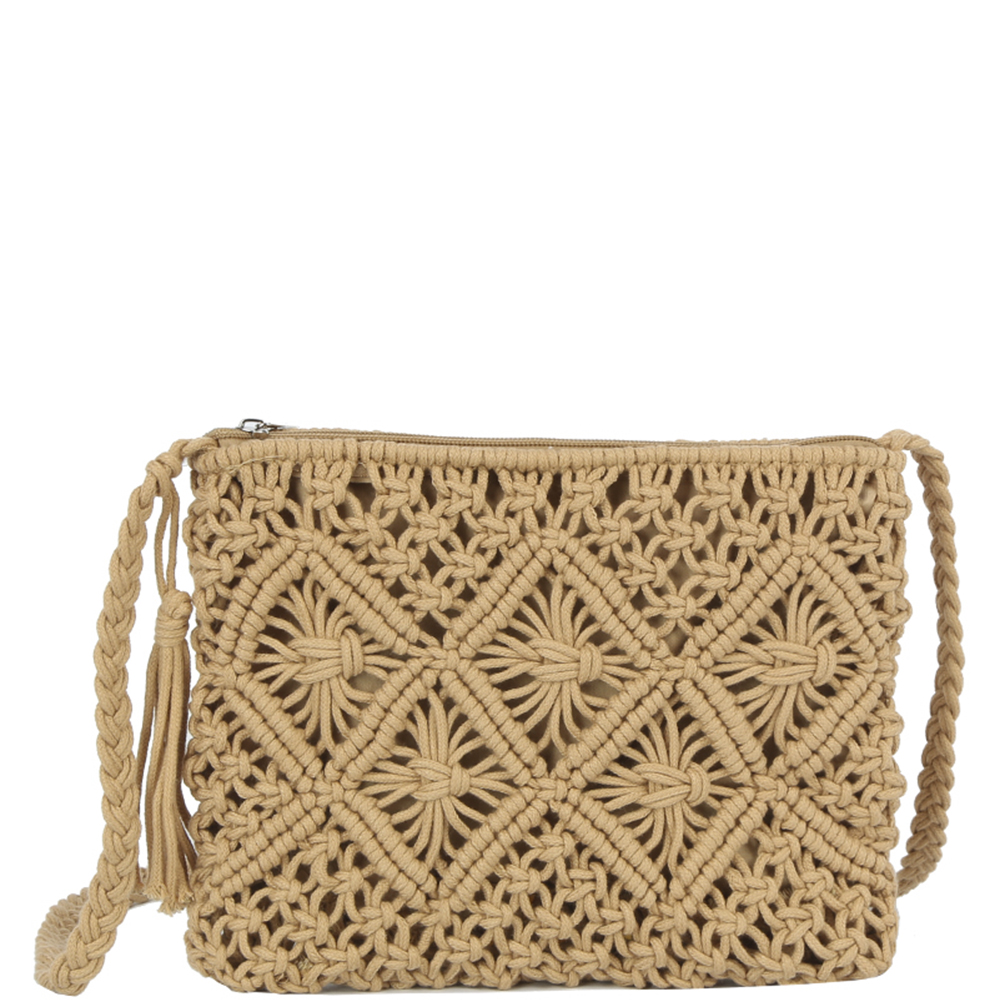 WOVEN DESIGN TASSEL CROSSBODY BAG