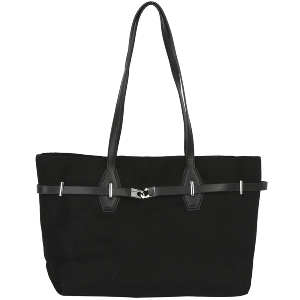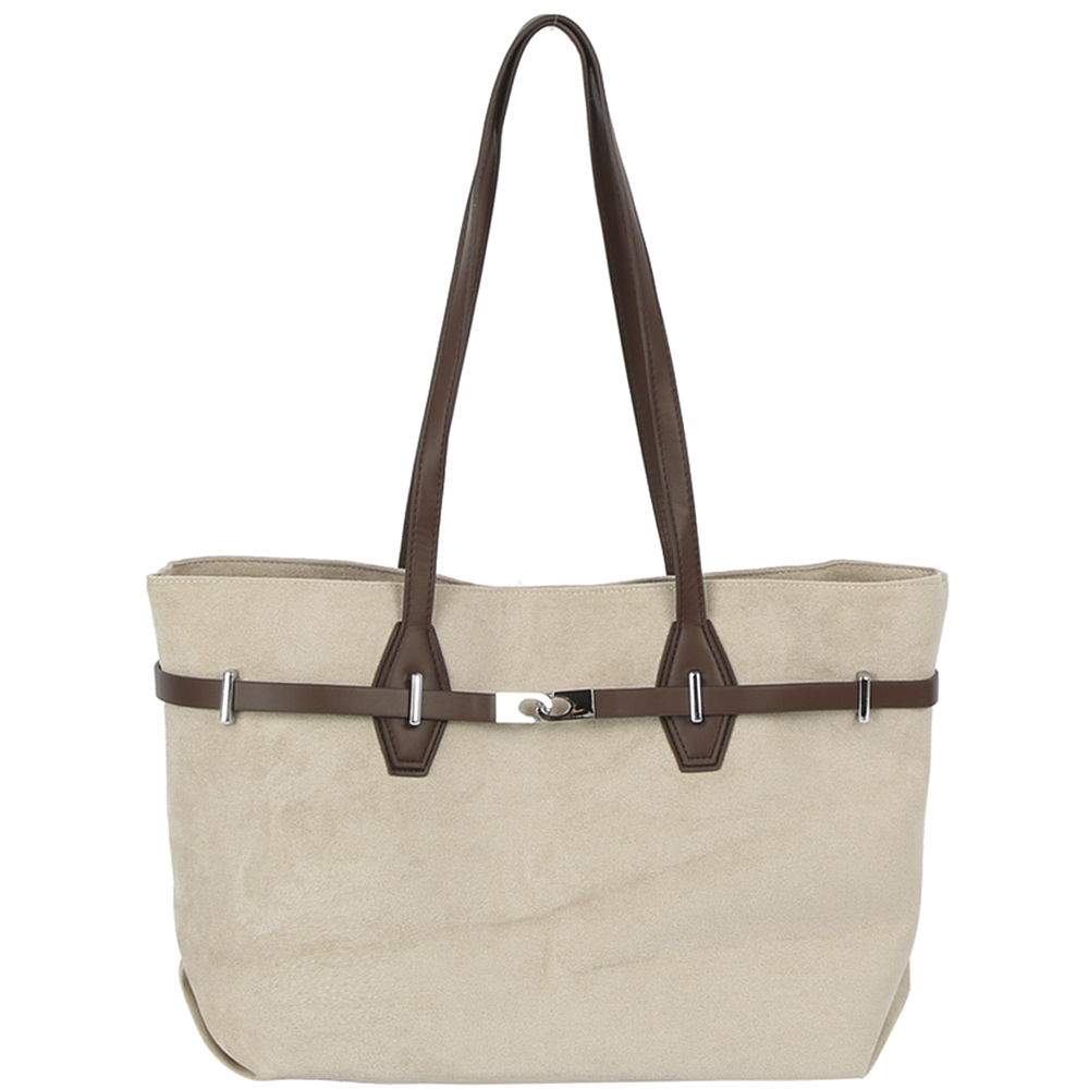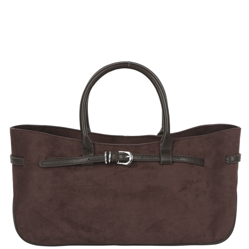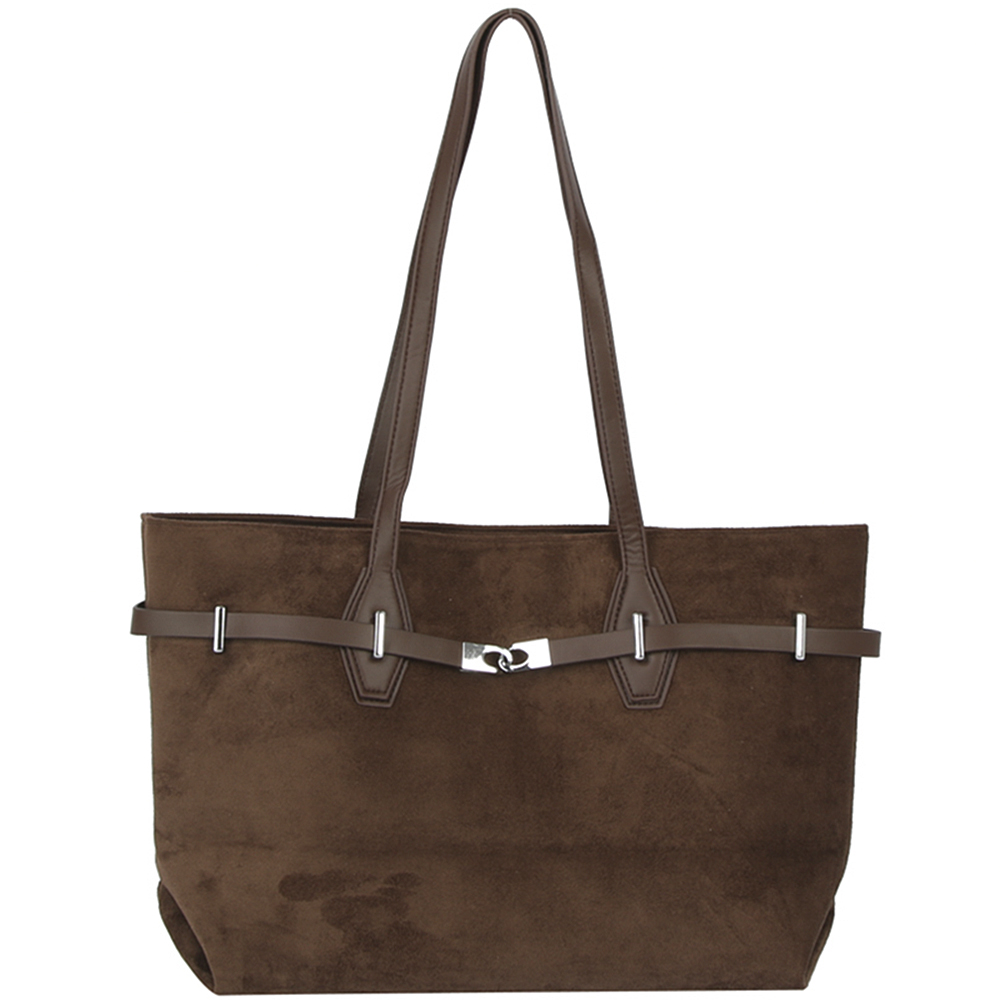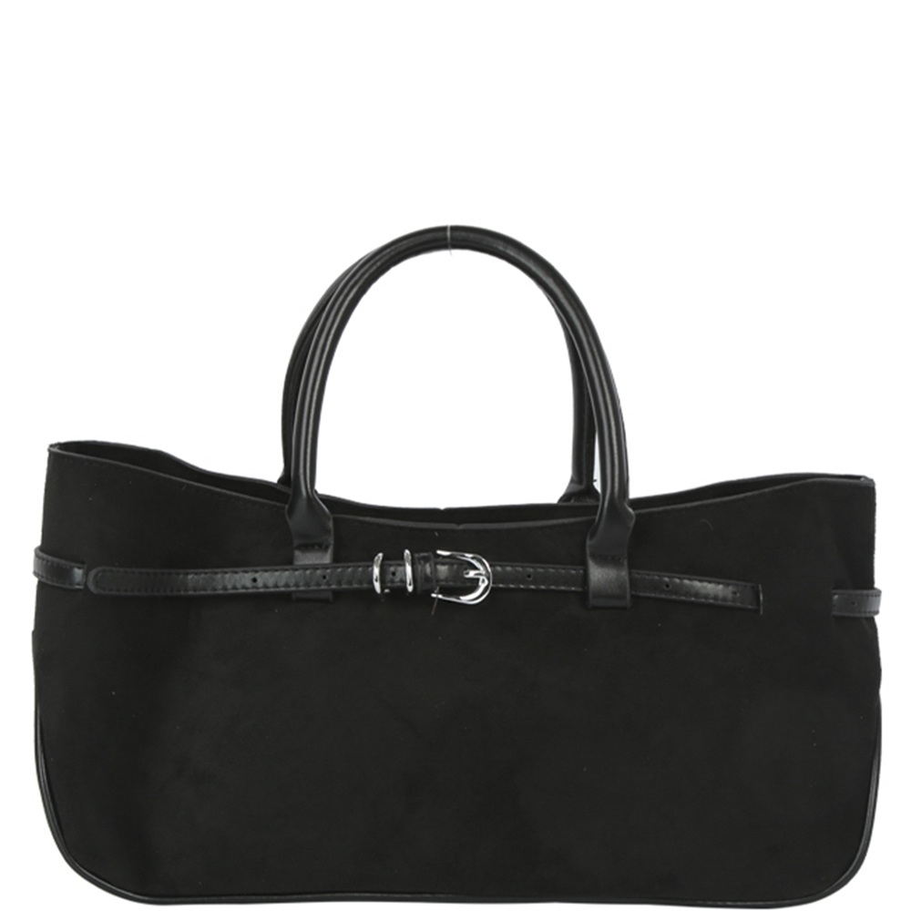 TEXTURED LEATHER BUCKLE DESIGN SATCHEL BAG