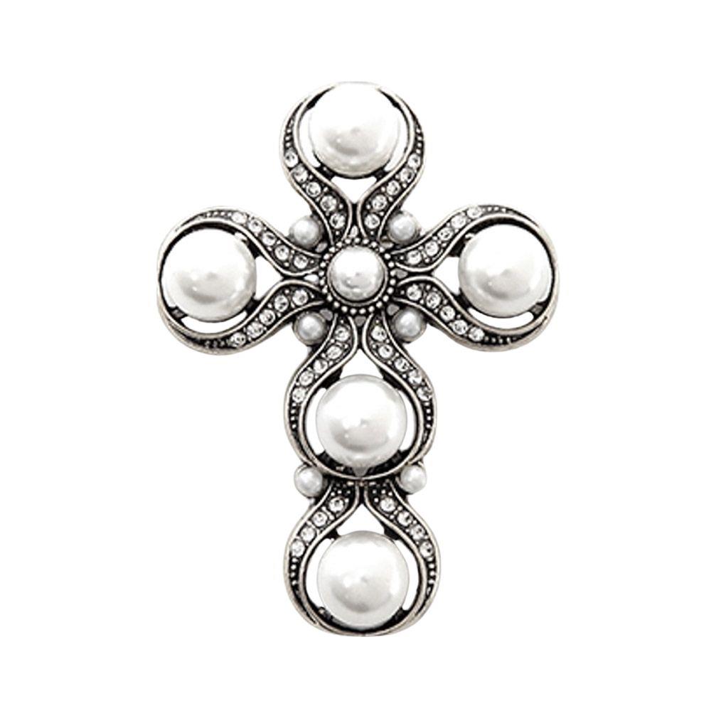 METAL CROSS WITH PEARL ACCENT BROOCH