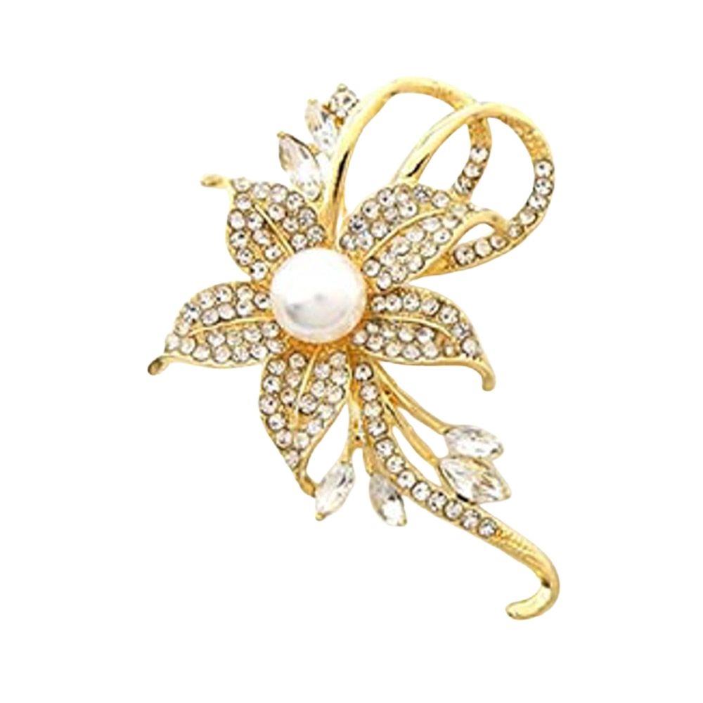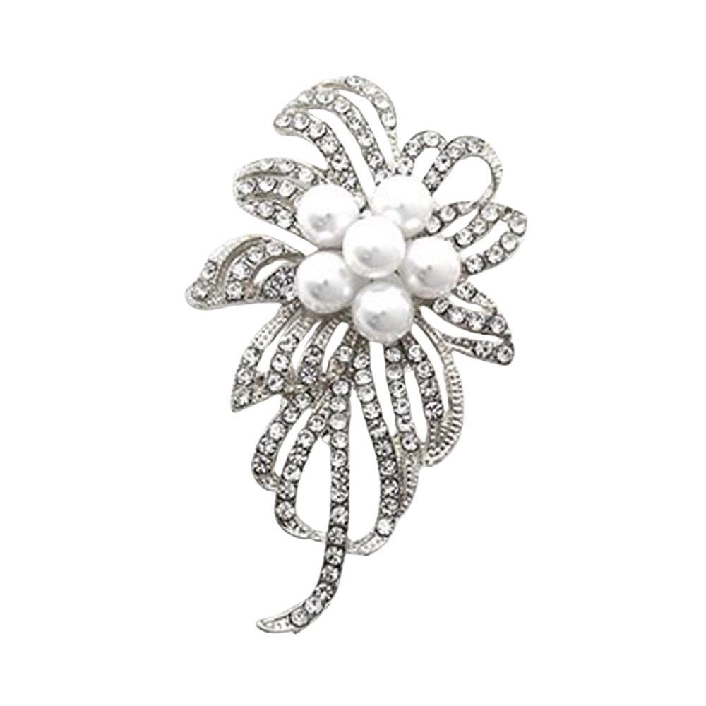 RHINESTONE AND PEARL FLOWER BROOCH