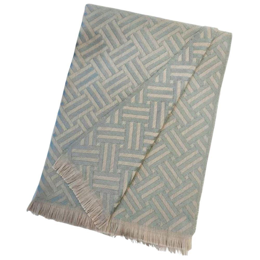 GEOMETRIC PATTERN FRINGE EDGE KNIT OBLONG SCARF