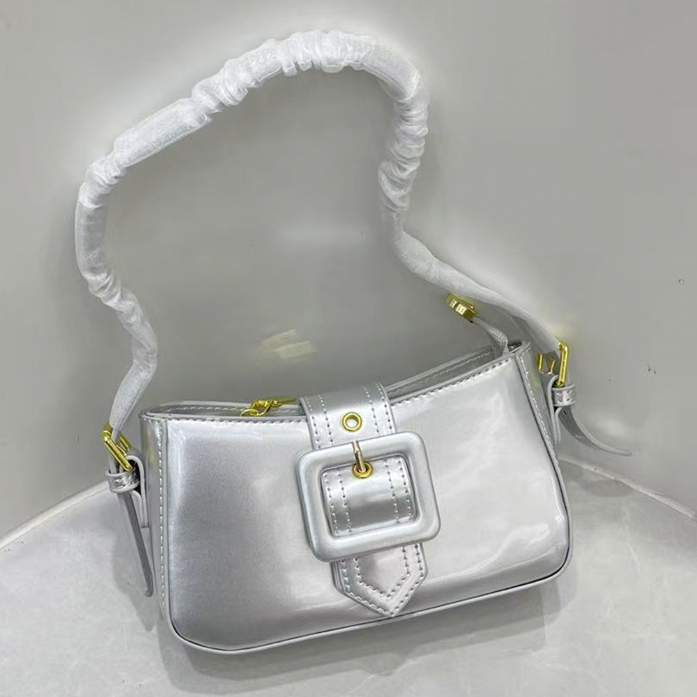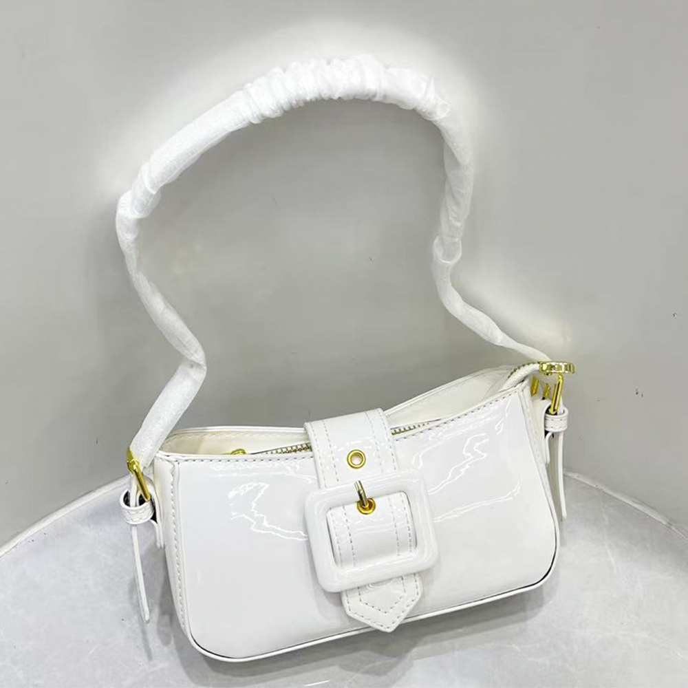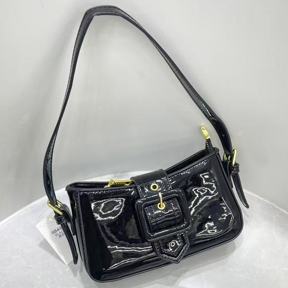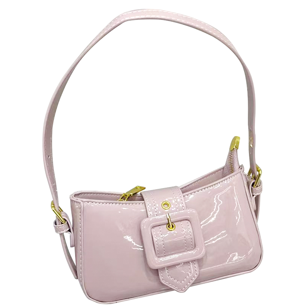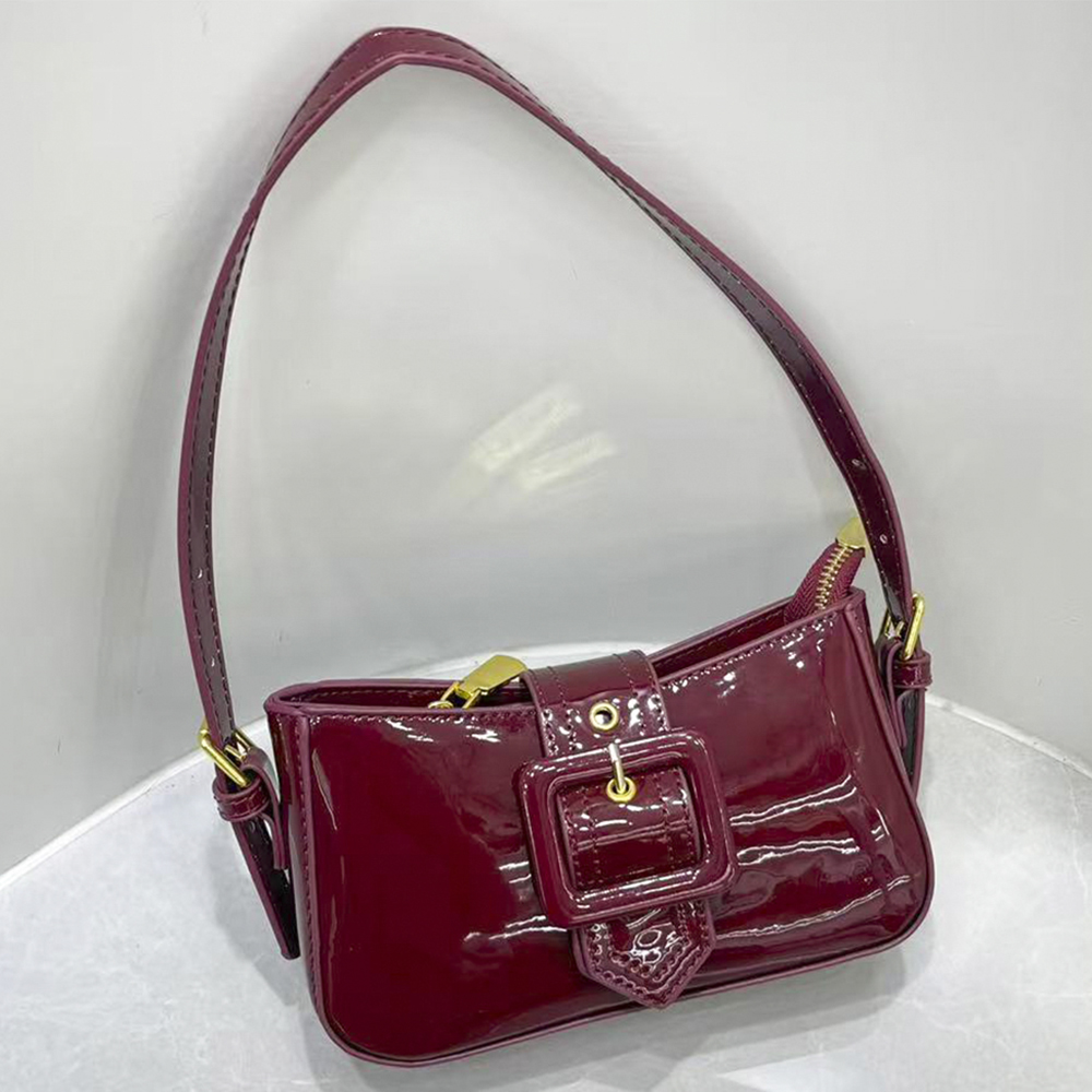 GLOSSY TEXTURE BUCKLE SHOULDER BAG