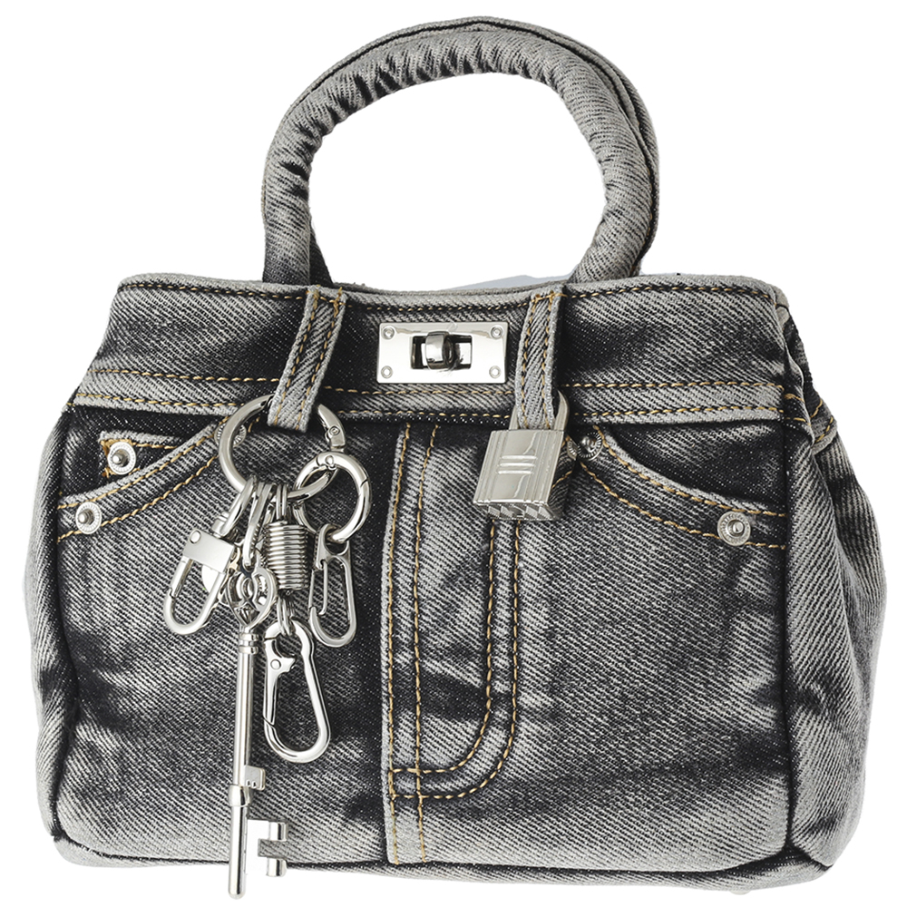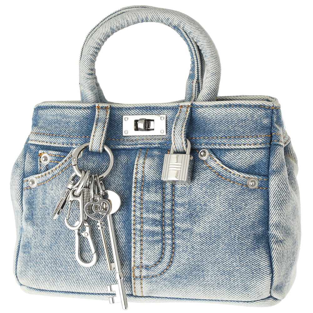 WASHED DENIM HANDLE BAG