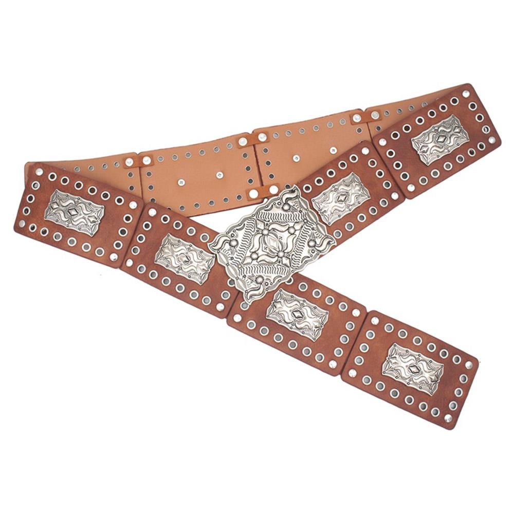 WESTERN CONCHO RECTANGLE STUDDED LEATHER LINK BELT