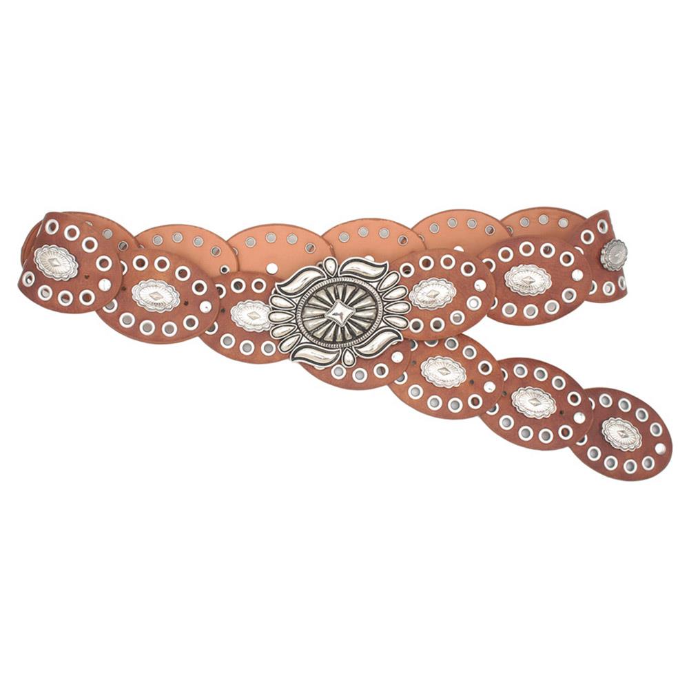 WESTERN CONCHO OVAL STUDDED LEATHER LINK BELT