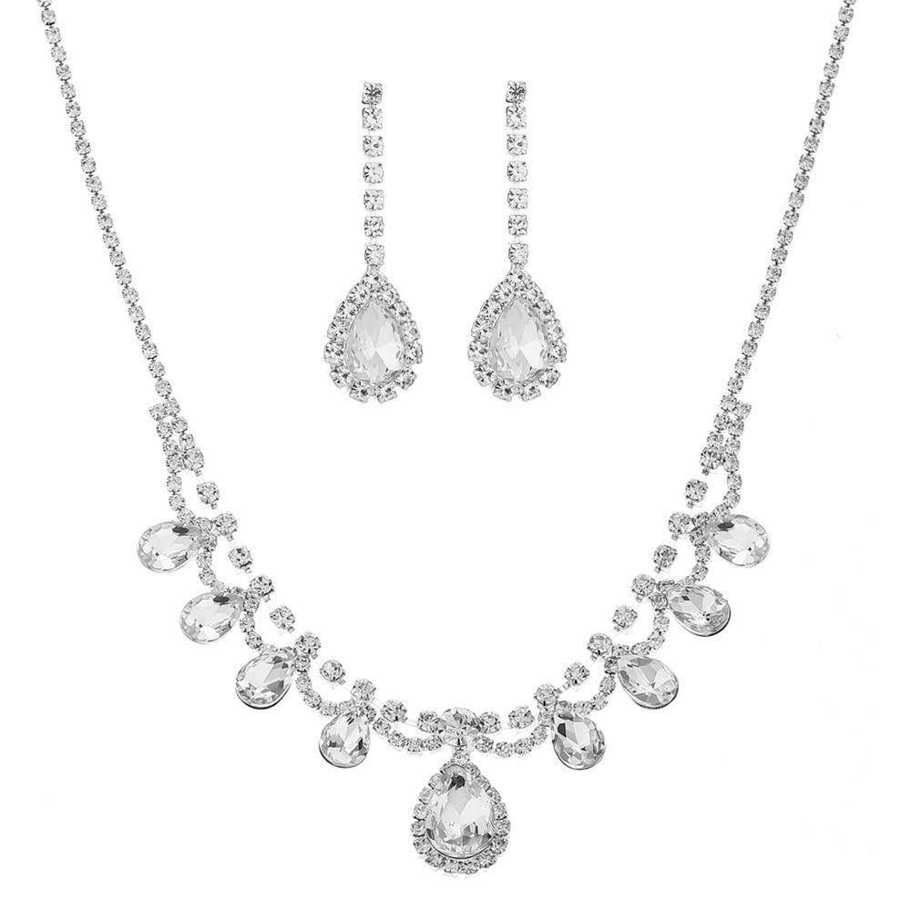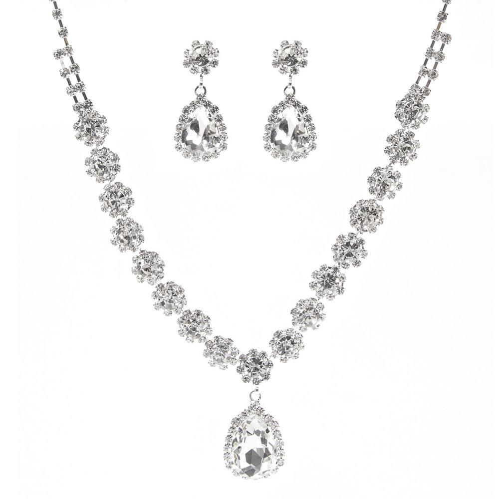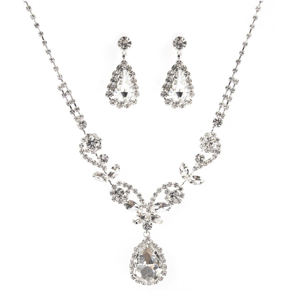 RHINESTONE TEARDROP FLOWER 2PC SET NECKLACE