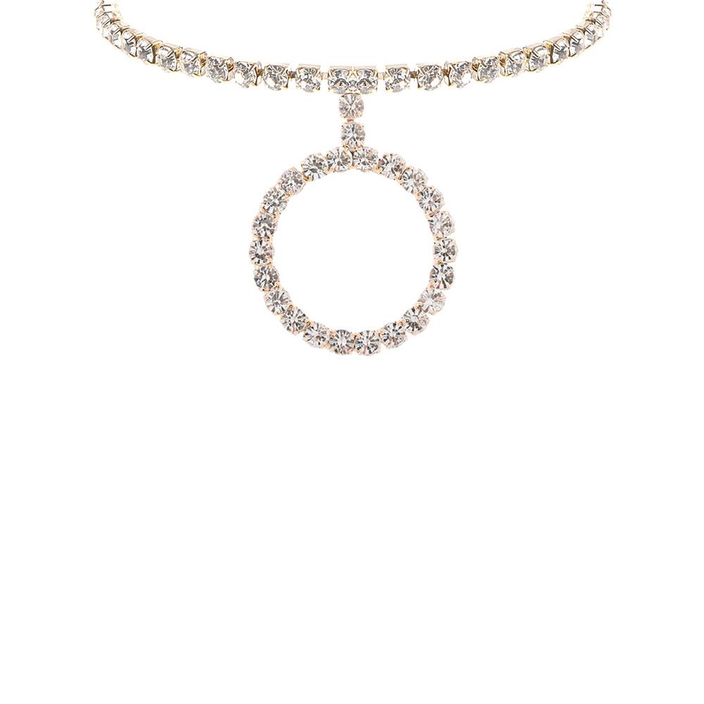 RHINESTONE ROUND PENDANT COLLAR CHOKER NECKLACE