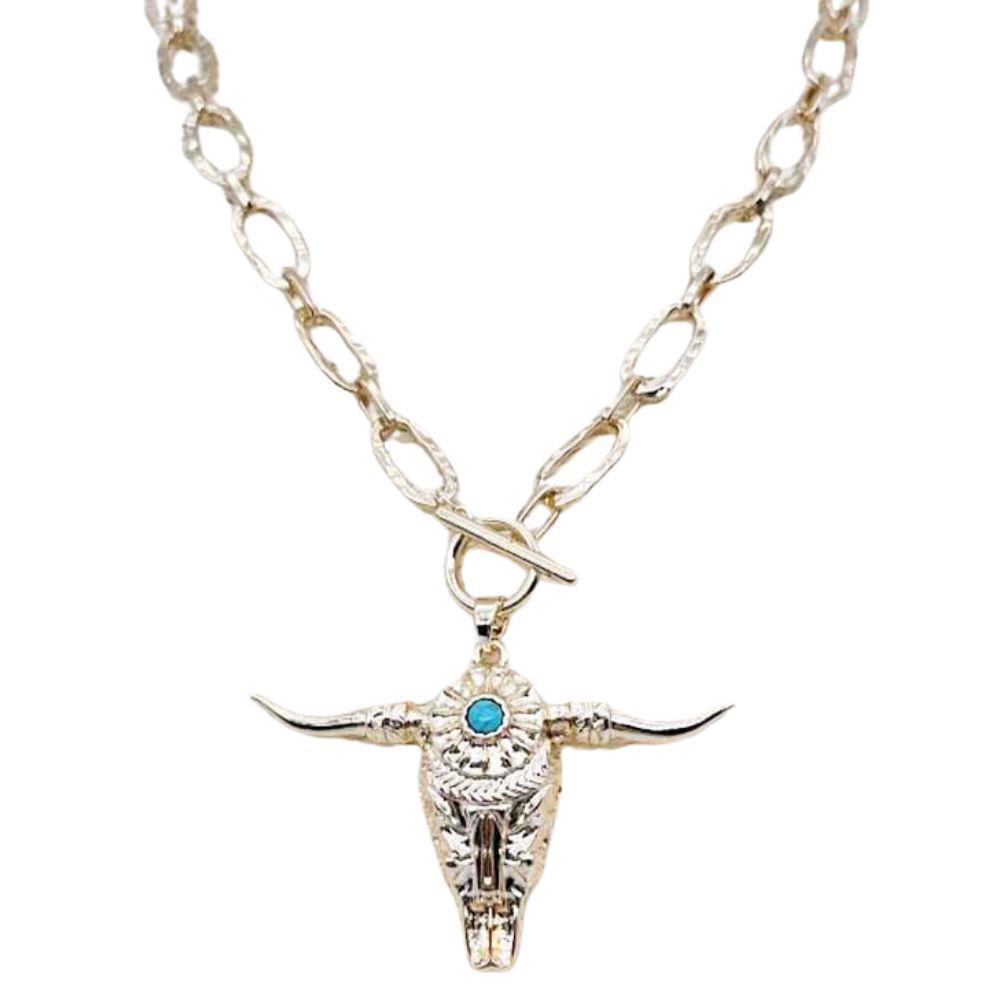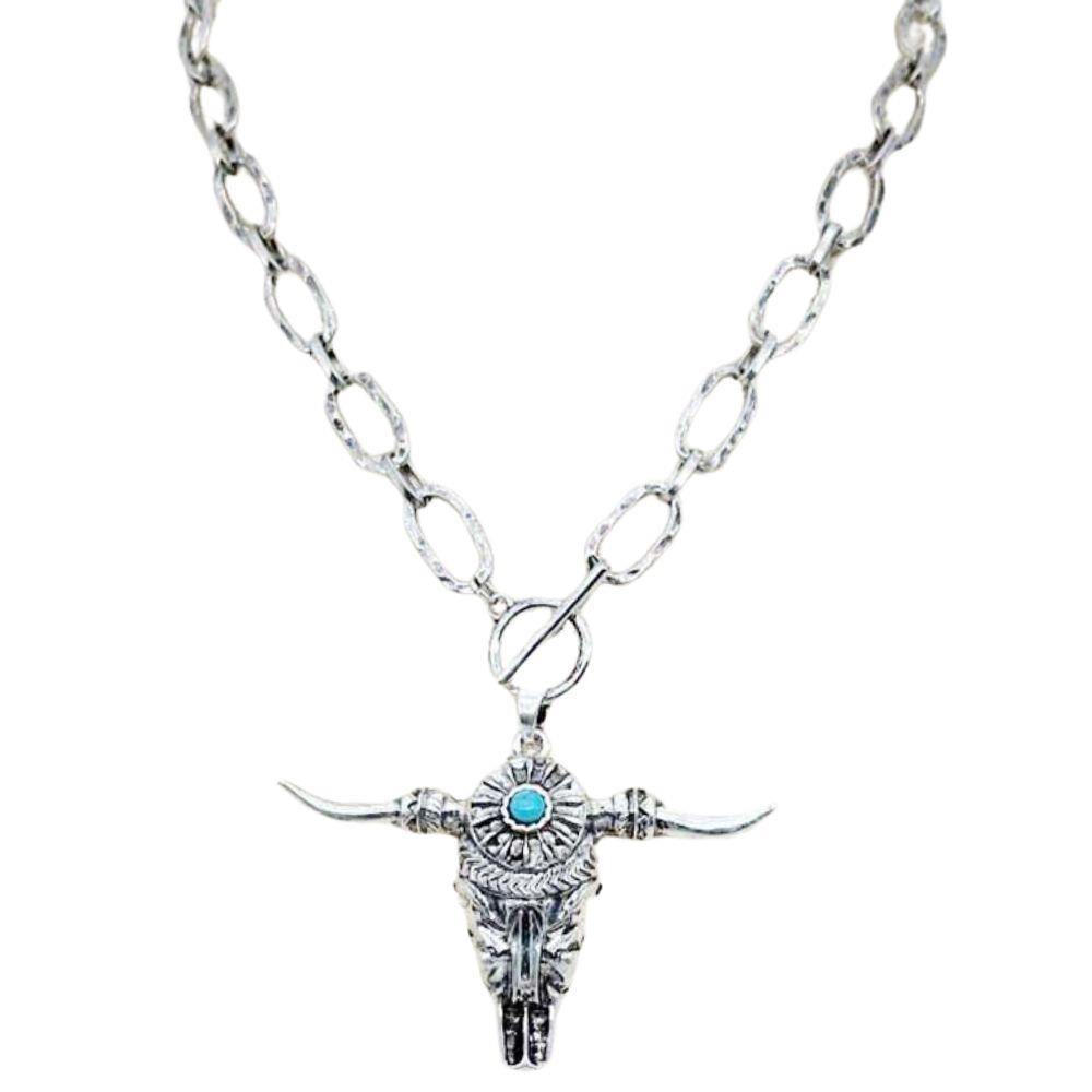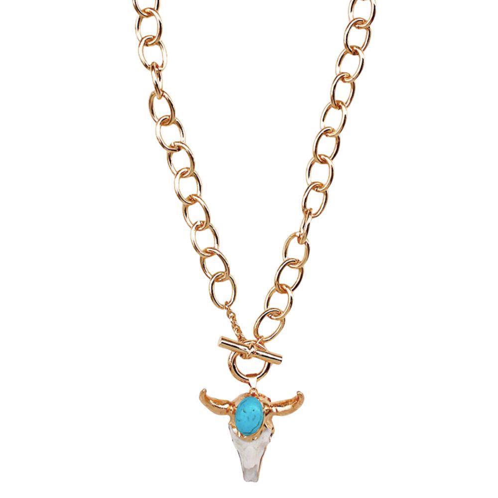 CATTLE SKULL PENDANT OVAL LINK METAL NECKLACE