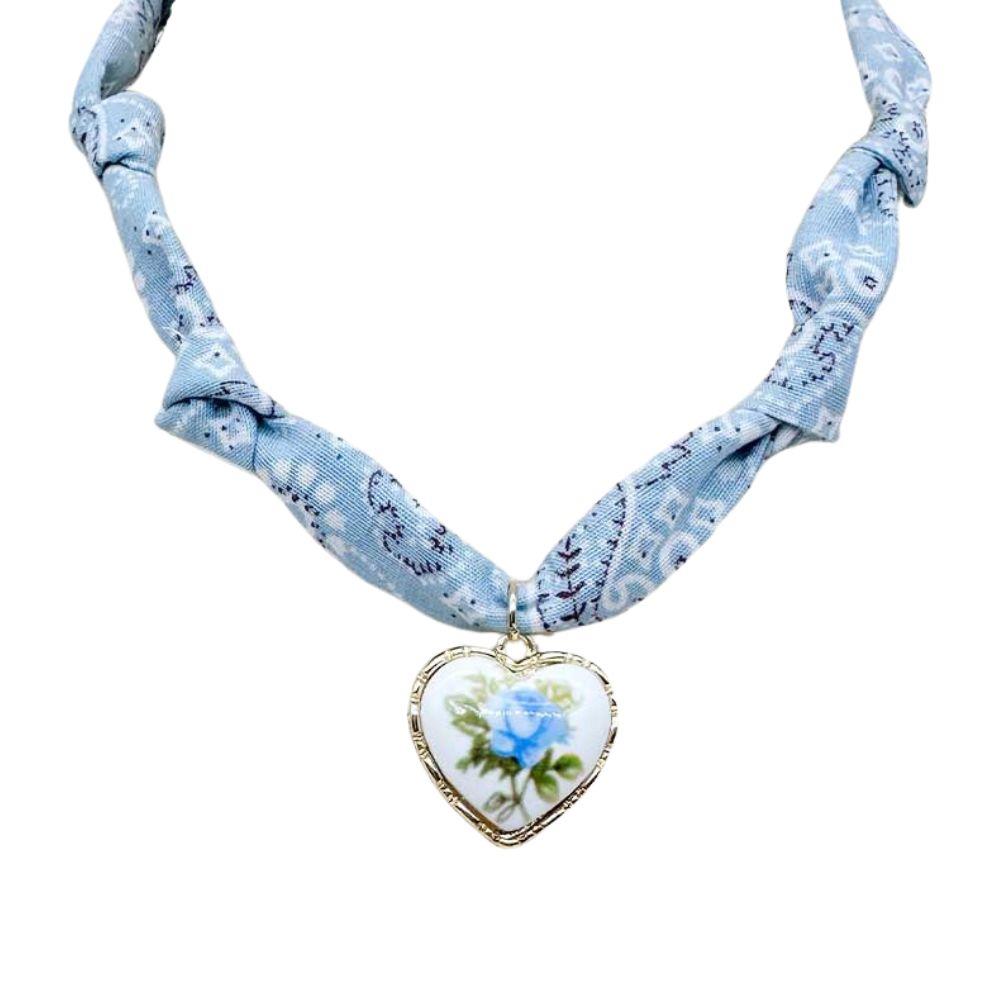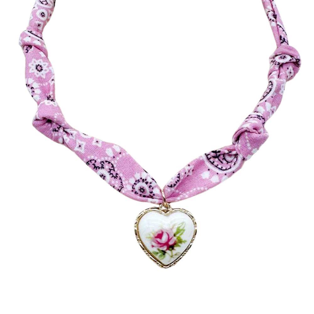 FLOWER CERAMIC BEAD HEART SHAPE SCARF NECKLACE