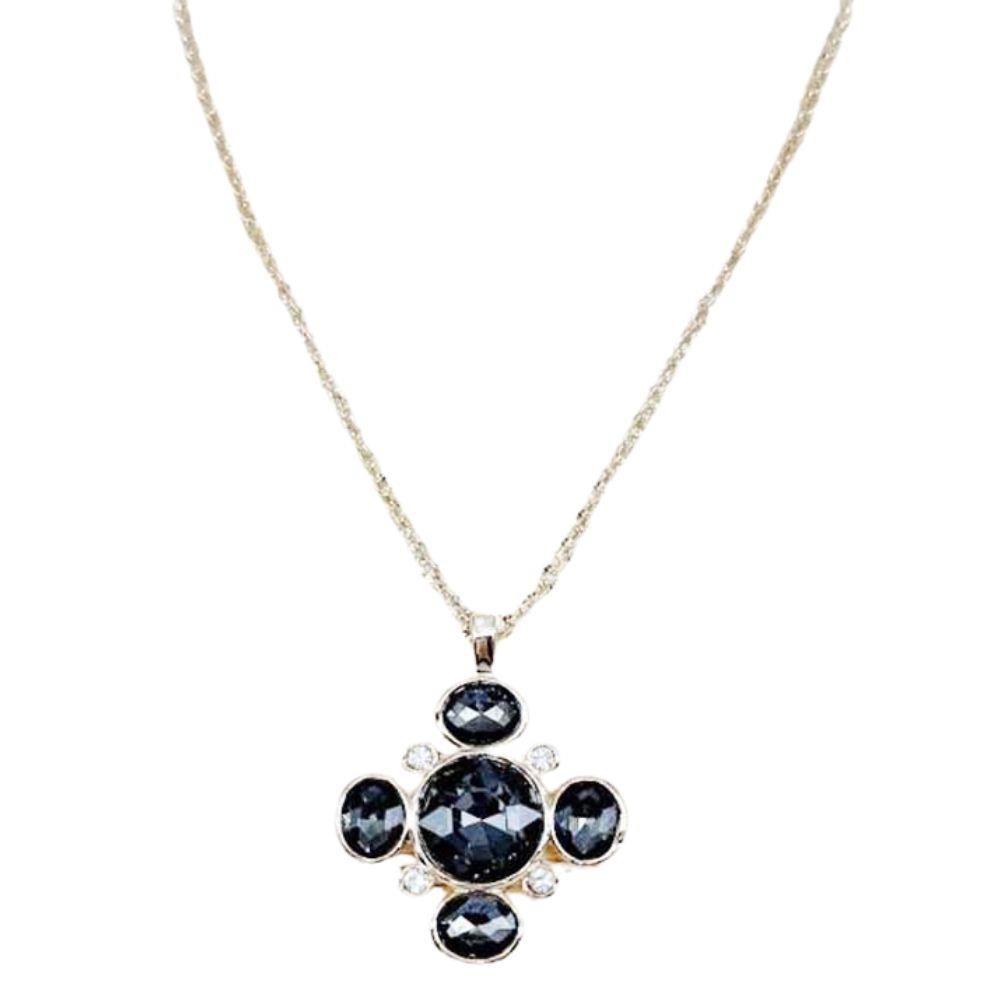 RHINESTONE TEARDROP FLOWER 2 PC NECKLACE