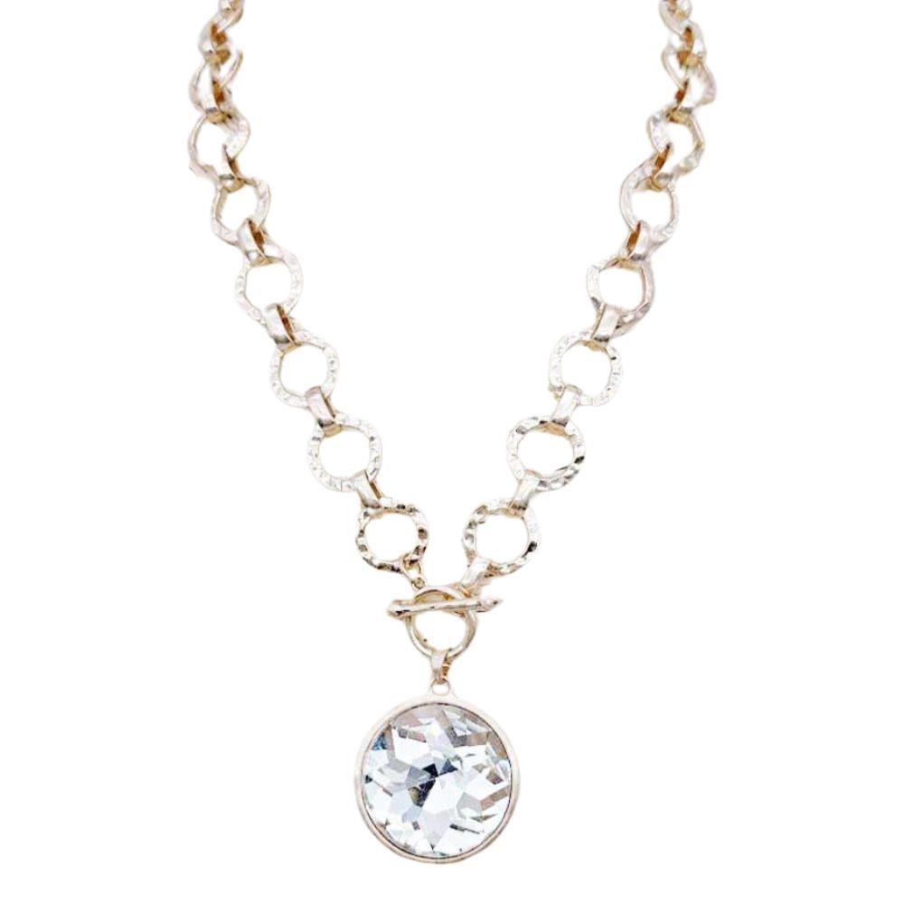 ROUND CRYSTAL PENDANT CIRCLE LINK NECKLACE
