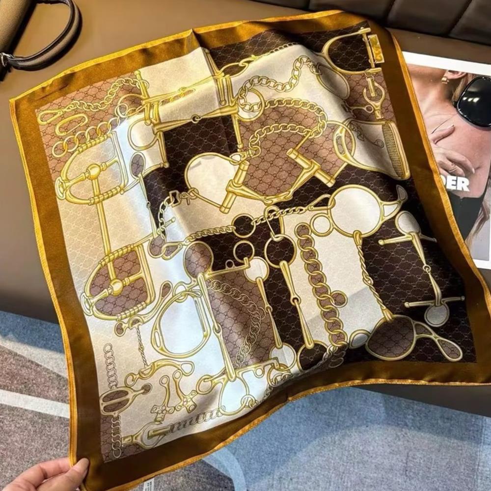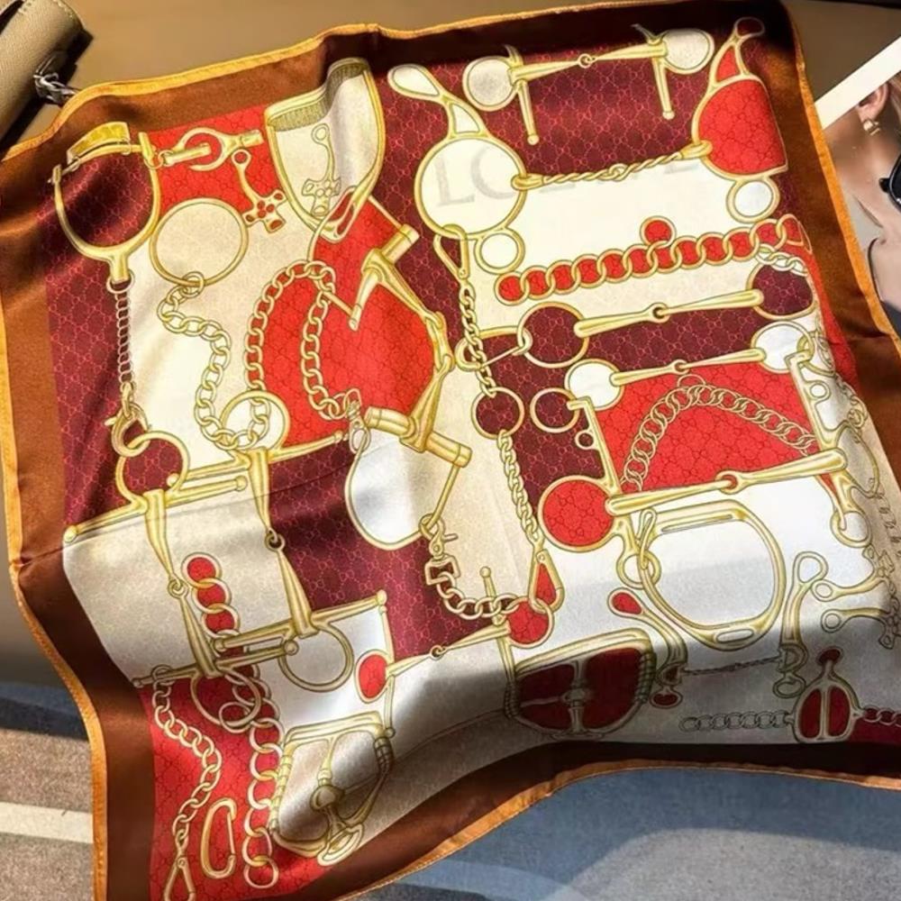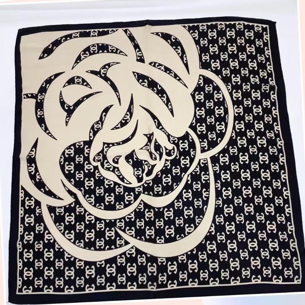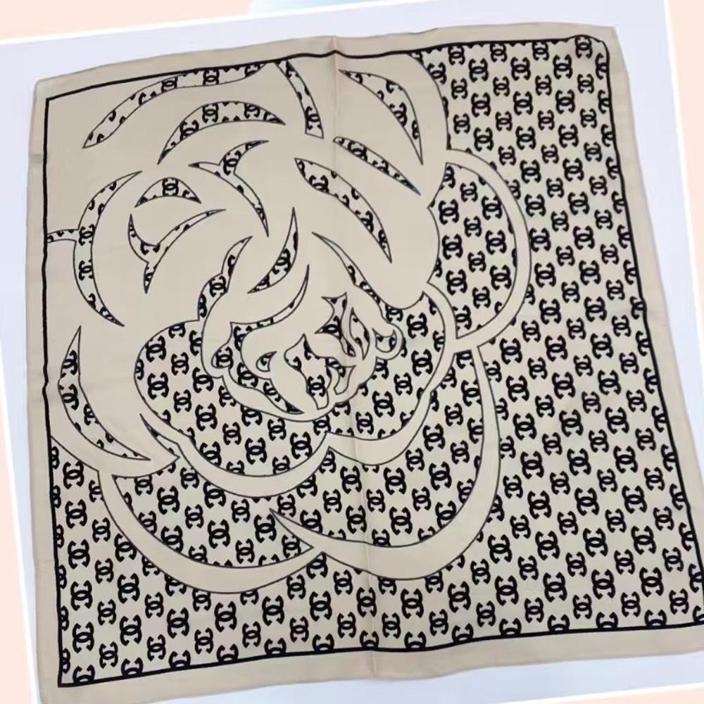 ROSE PATTERN MONOGRAM SILKY BANDANA NECK SQUARE SCARF