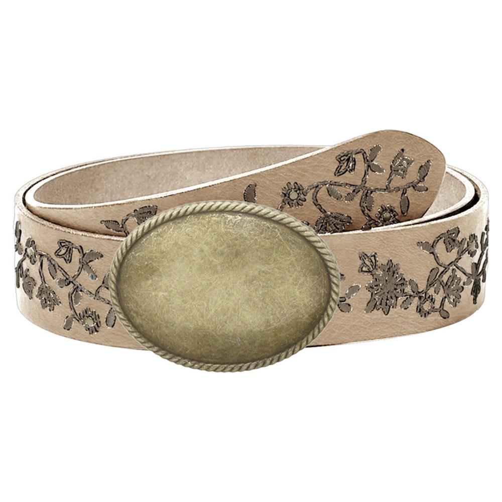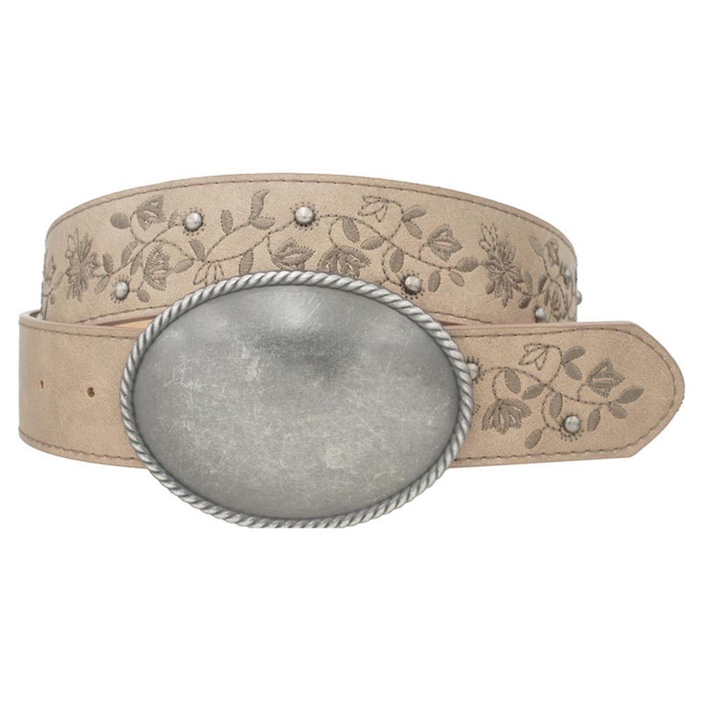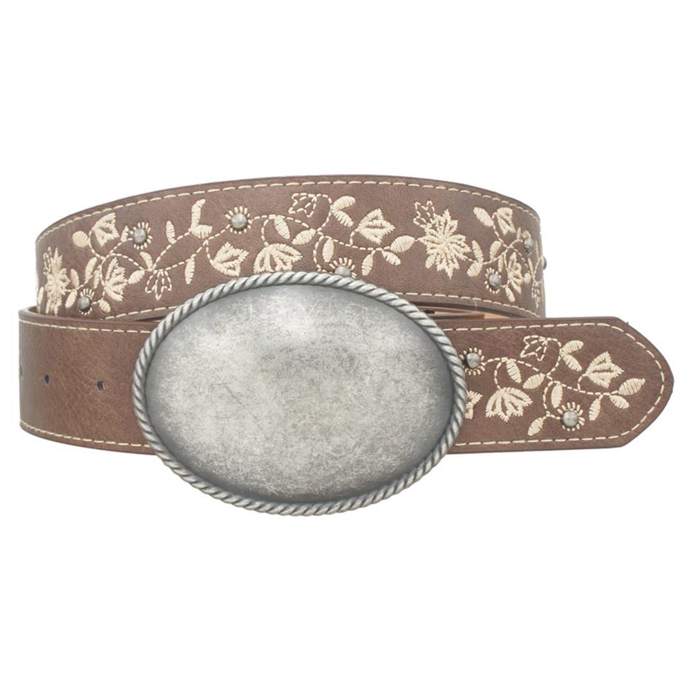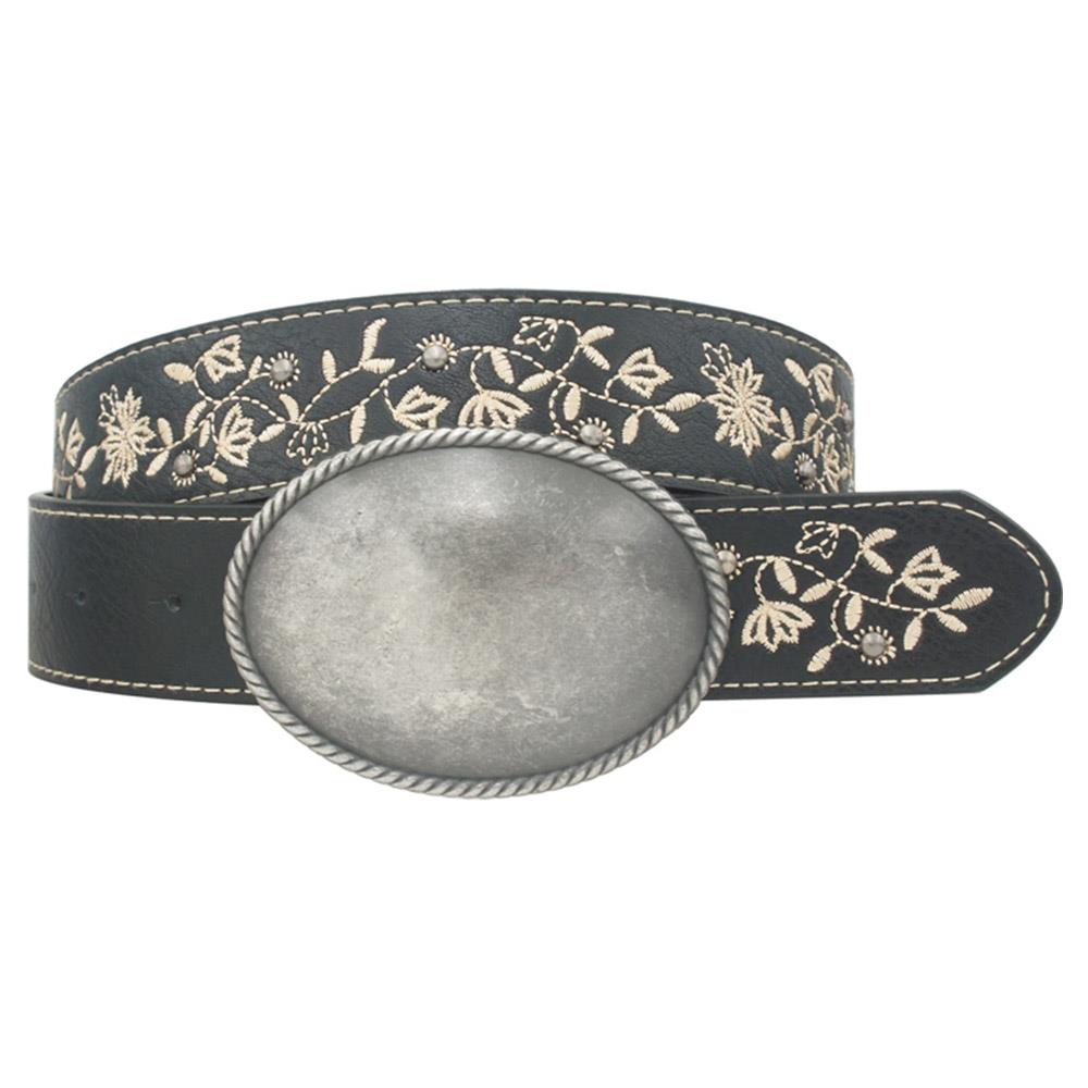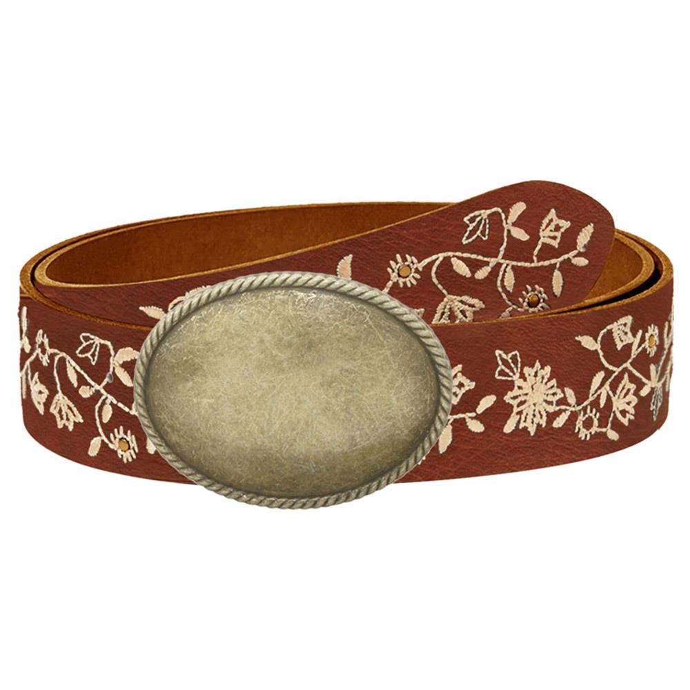 VINTAGE OVAL BUCKLE VINE LEAF EMBROIDERED STRAP BELT