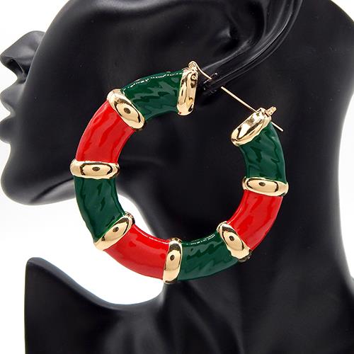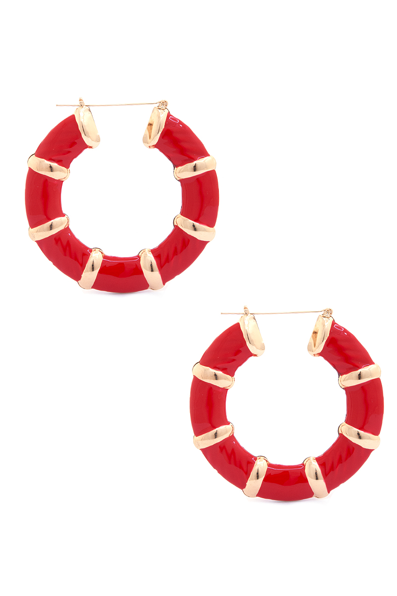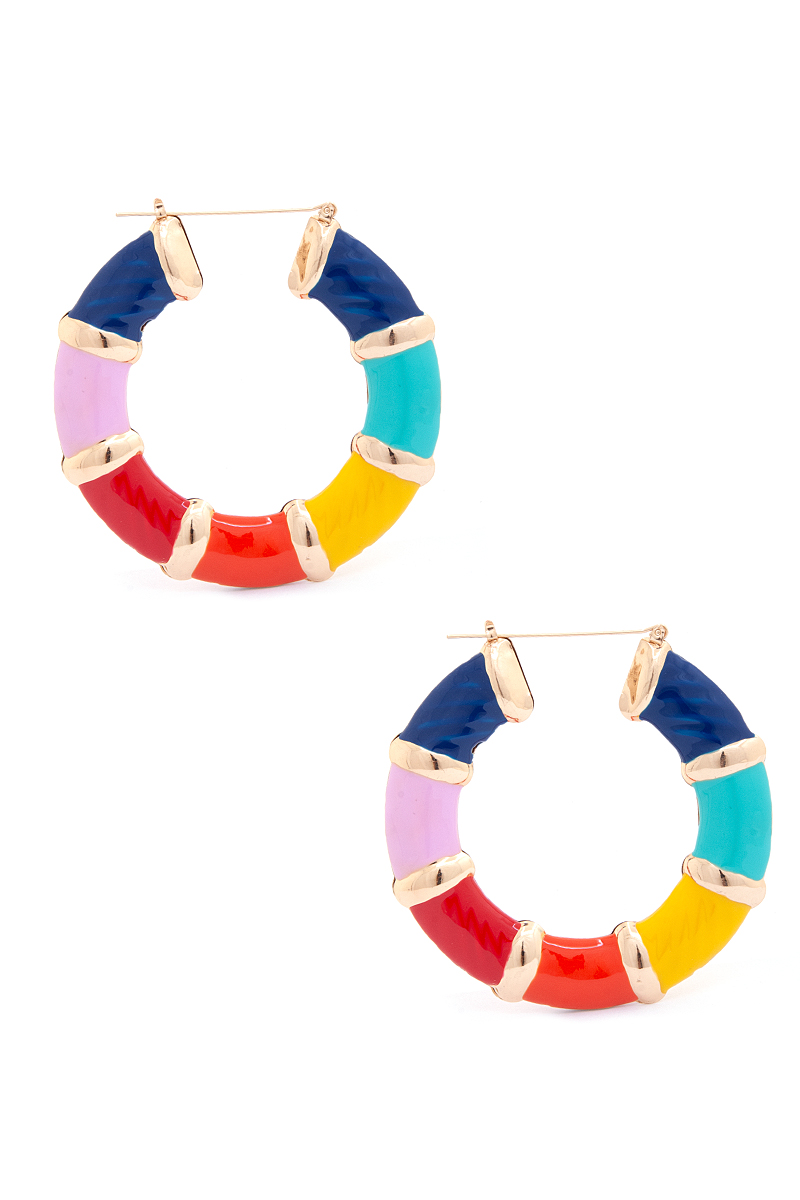 STYLISH METAL COLOR PATTERN ROUND HOOP EARRING