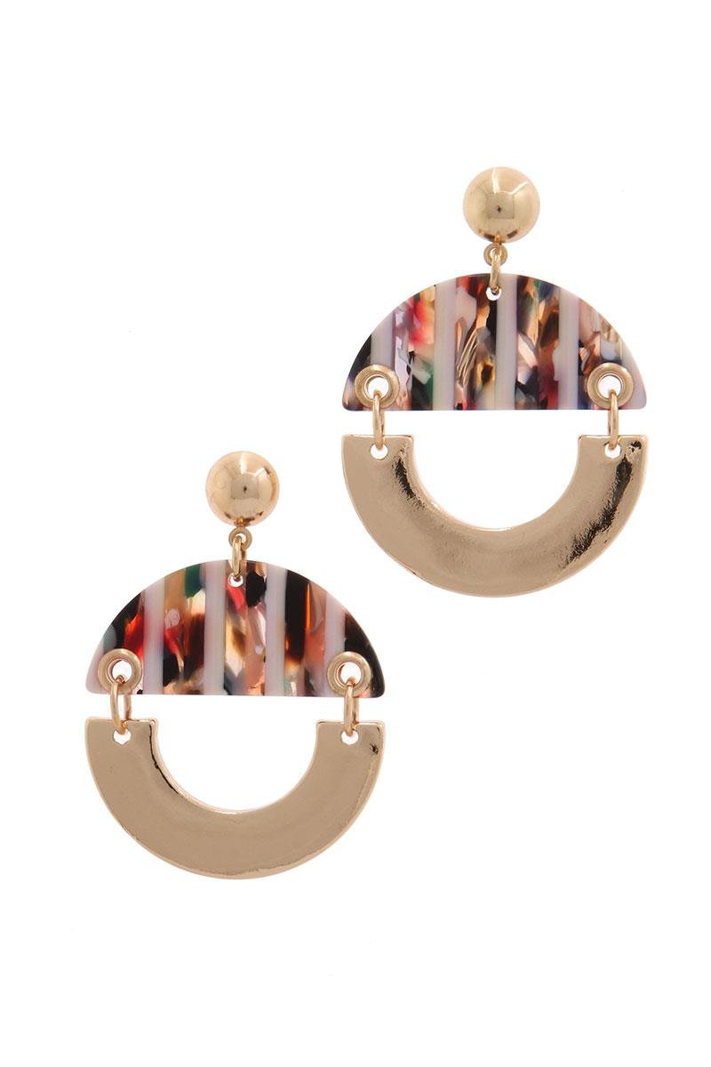 HALF CIRCLE ANIMAL PRINT PATTERN DROP EARRING