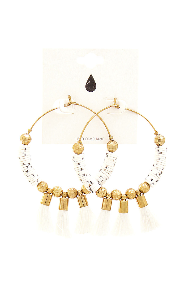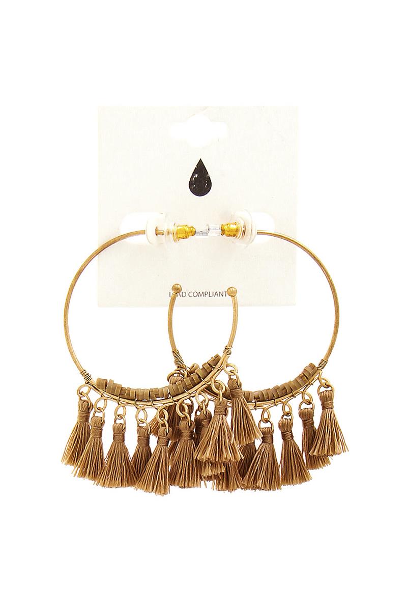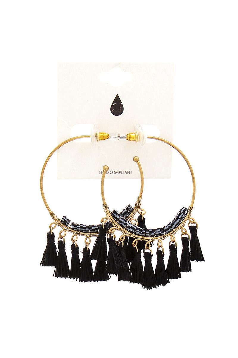 METAL CIRCLE THREAD WRAP BEADED EARRING