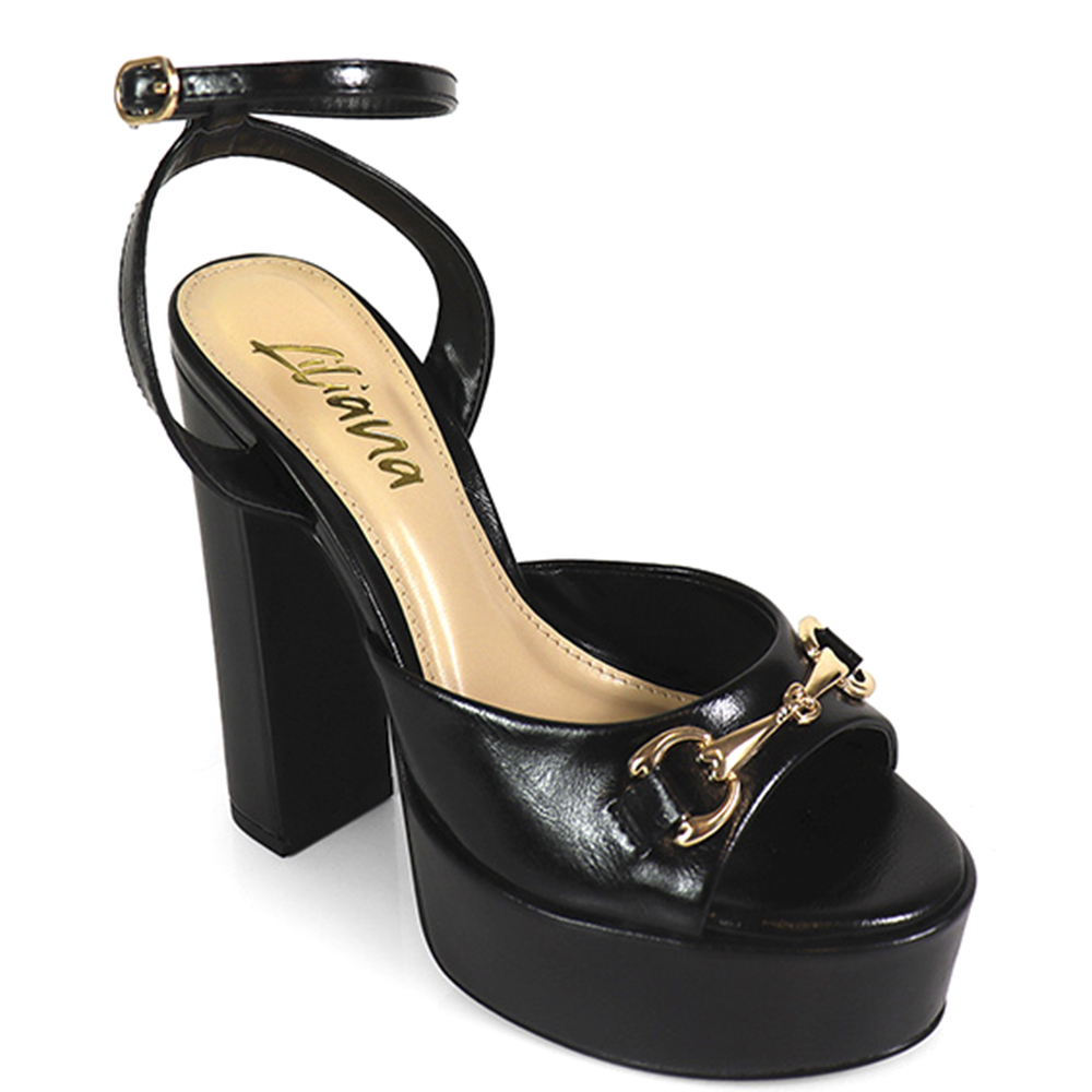 THIN DOUBLE STRAP HIGH WIDE GLOSS HEEL