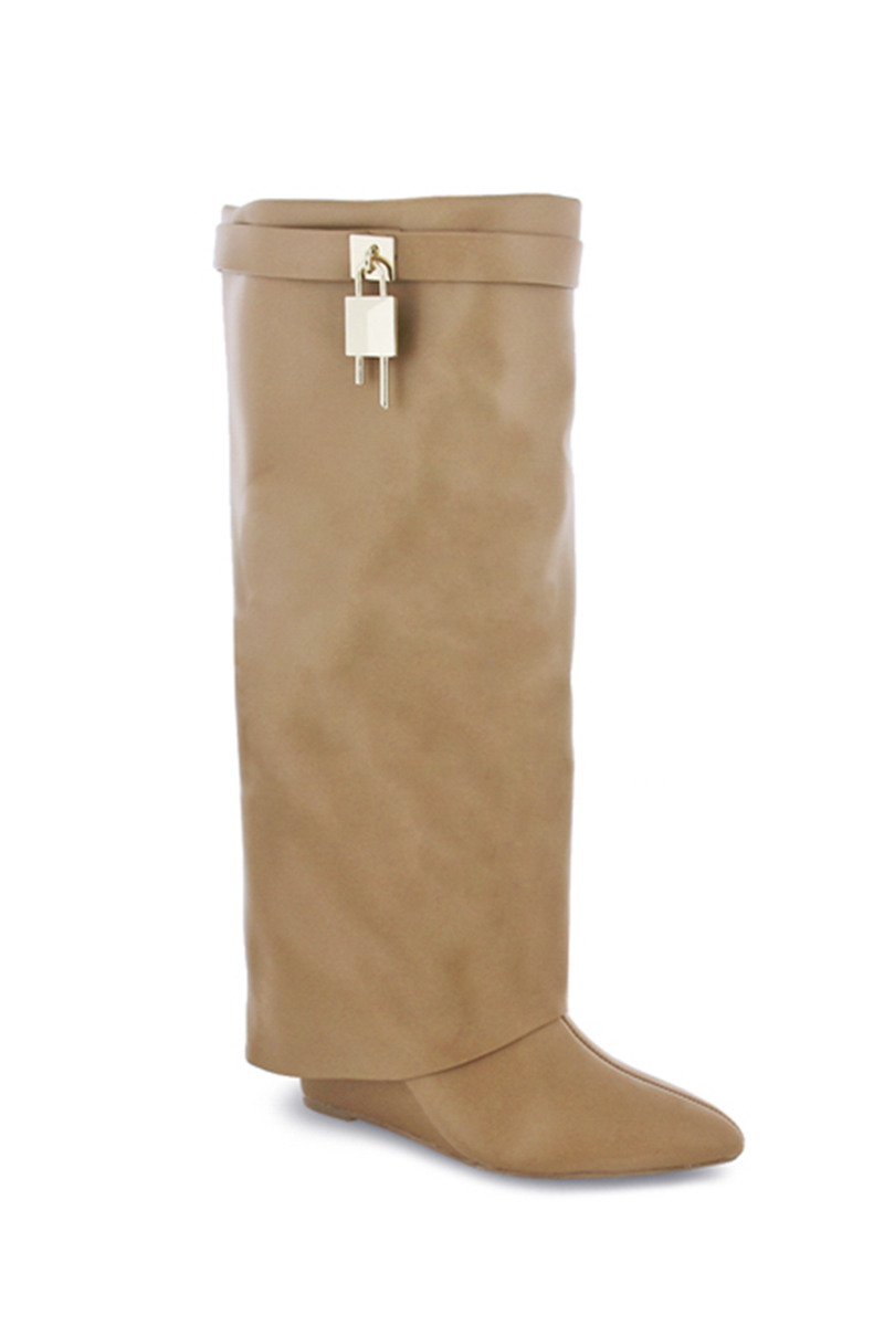 STYLISH KEY LOCK DESIGN HIGH LEG BOOTS