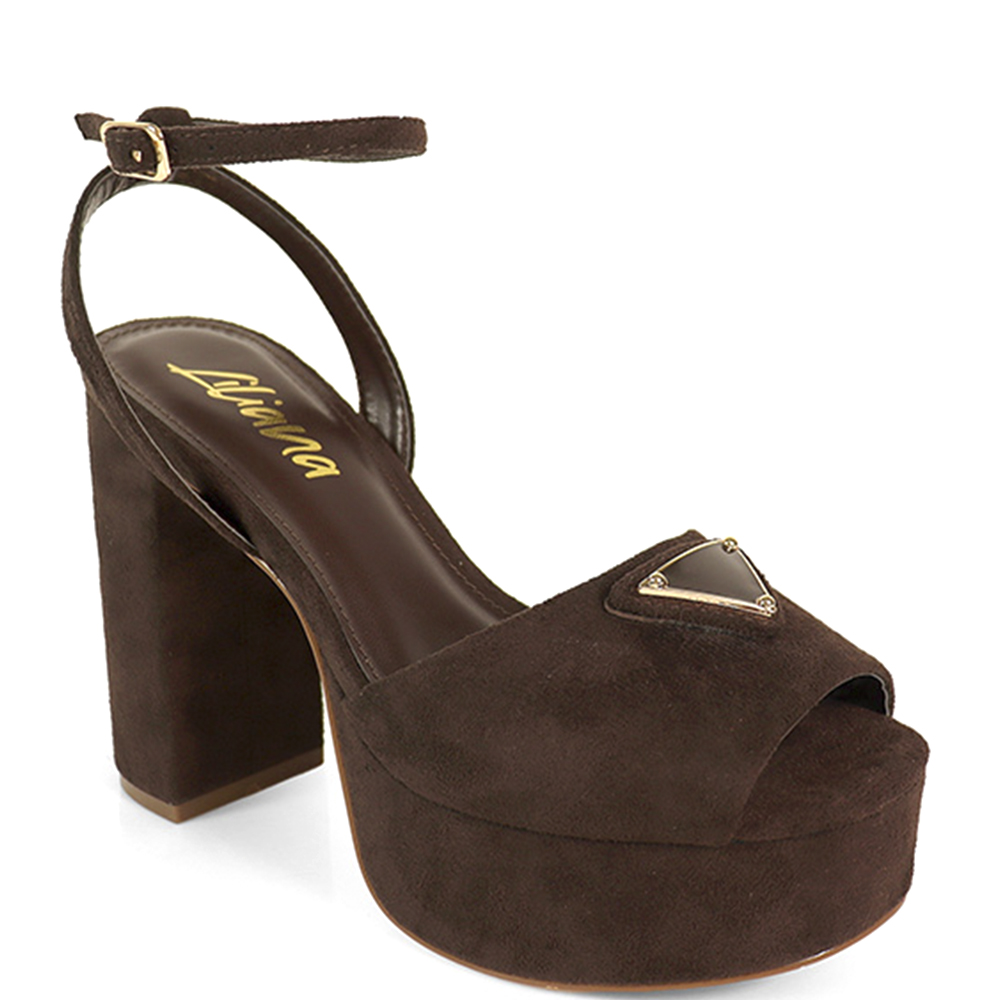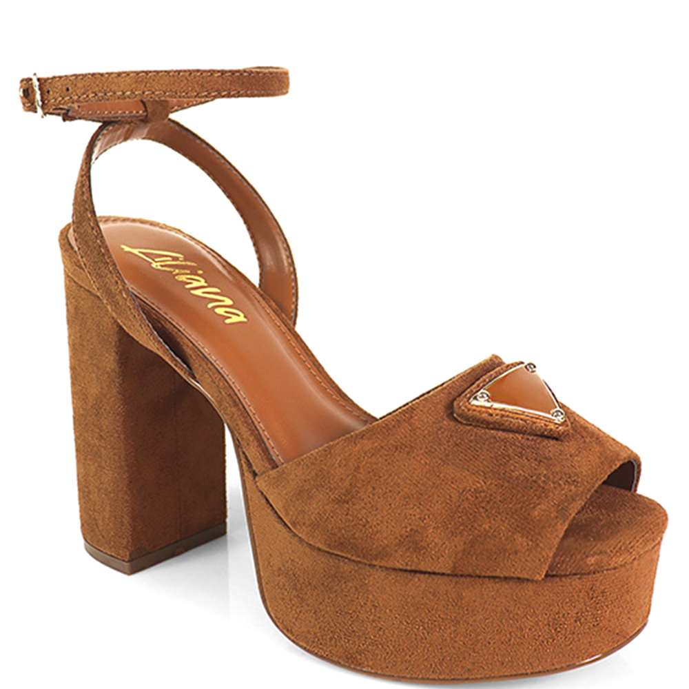 FASHION WOODEN TEXTURE DESIGN BUCKLE ANKLE WIDE HEEL