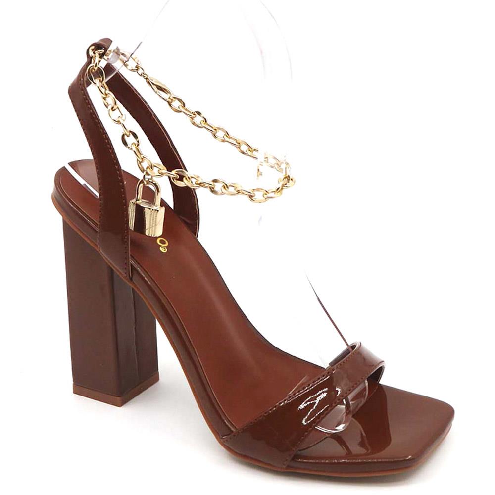 FASHION GLOSS KEY LOCK CHAIN SLIP SQUARE HEEL