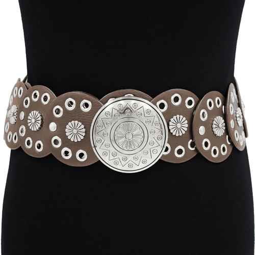 Y2K METAL WESTERN CONCHO EMBOSSED CIRCLE BELT