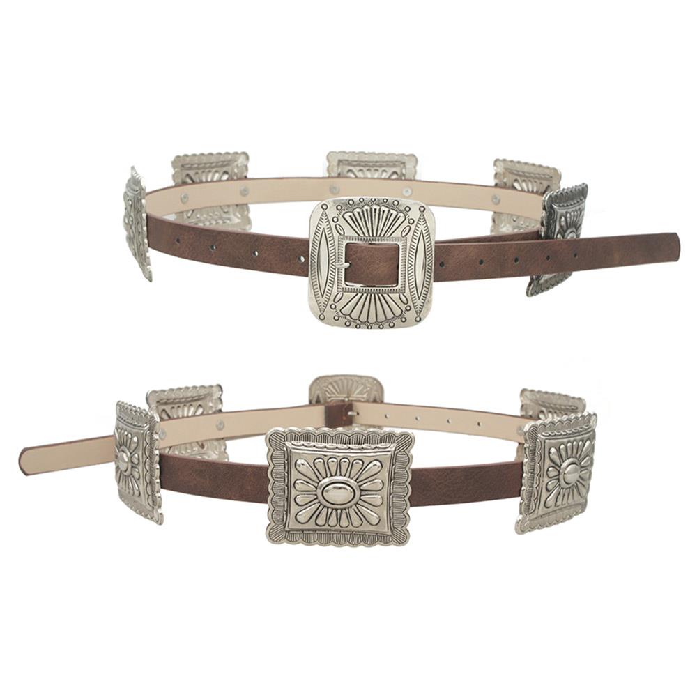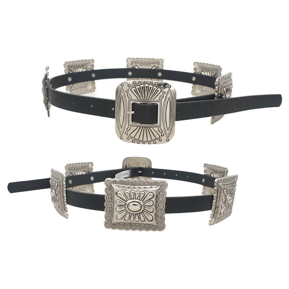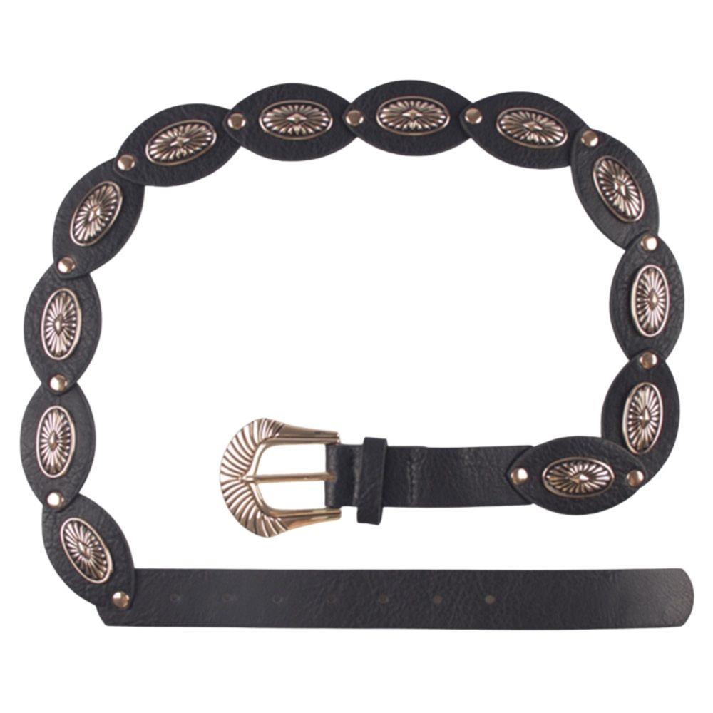 WESTERN OVAL METAL EMBELLISHED FAUX LEATHER LOOP BELT