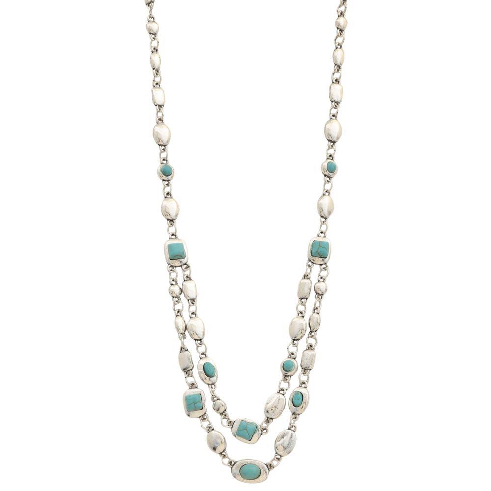 SDJ TURQUOISE BEAD METAL LAYERED NECKLACE