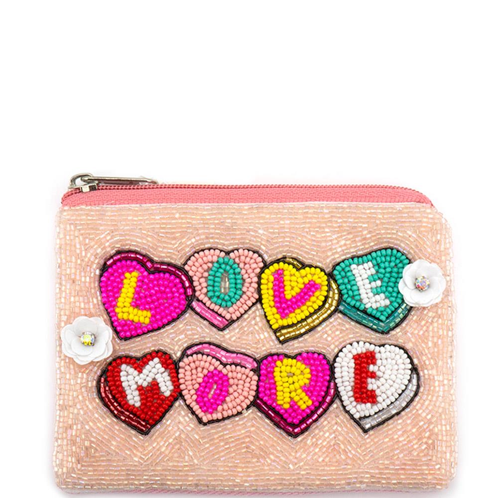 SEED BEAD LOVE MORE HEART GRAPHIC COIN PURSE BAG