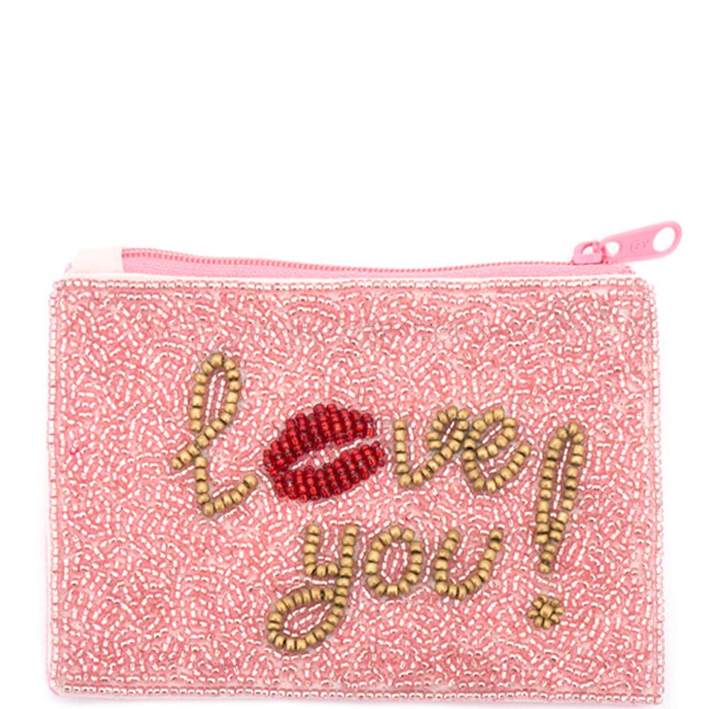 SEED BEAD LOVE YOU LIP GRAPHIC COIN PURSE BAG
