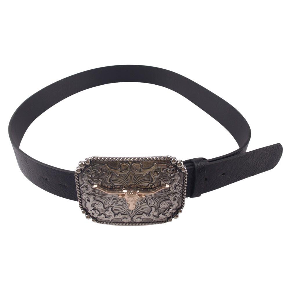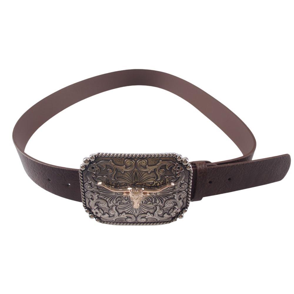 EMBOSSED METAL WESTERN BUCKLE FAUX LEATHER BELT