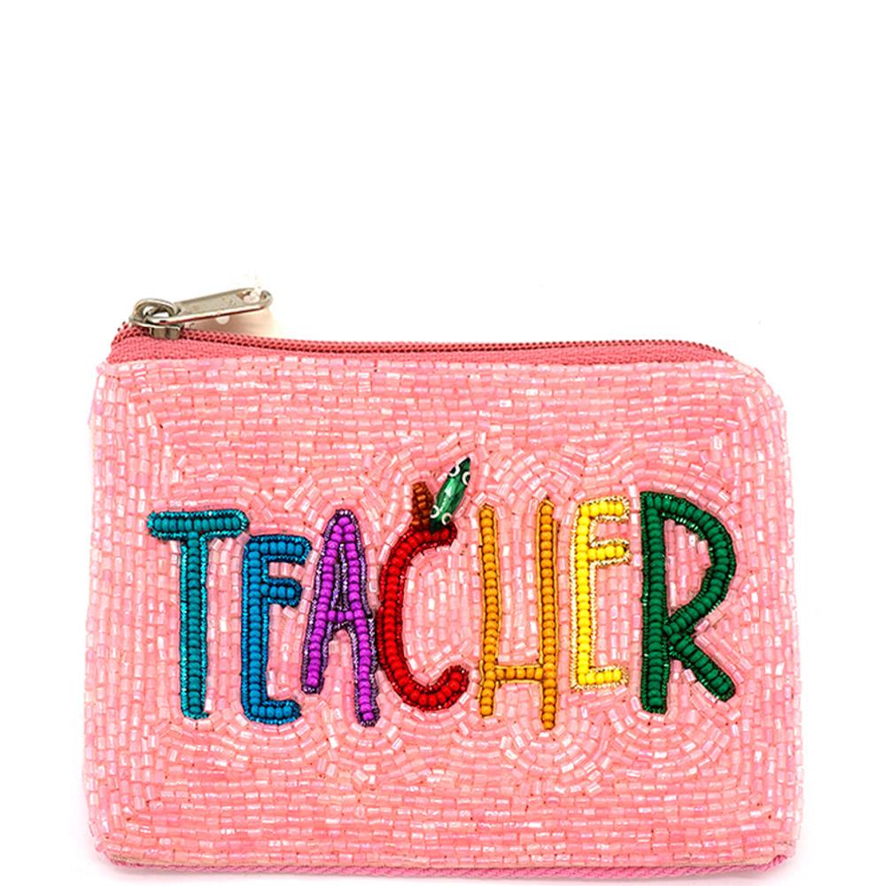 SEED BEAD BEST TEACHER EVER TYPOGRAPHY STAR GRAPHIC COIN PURSE BAG