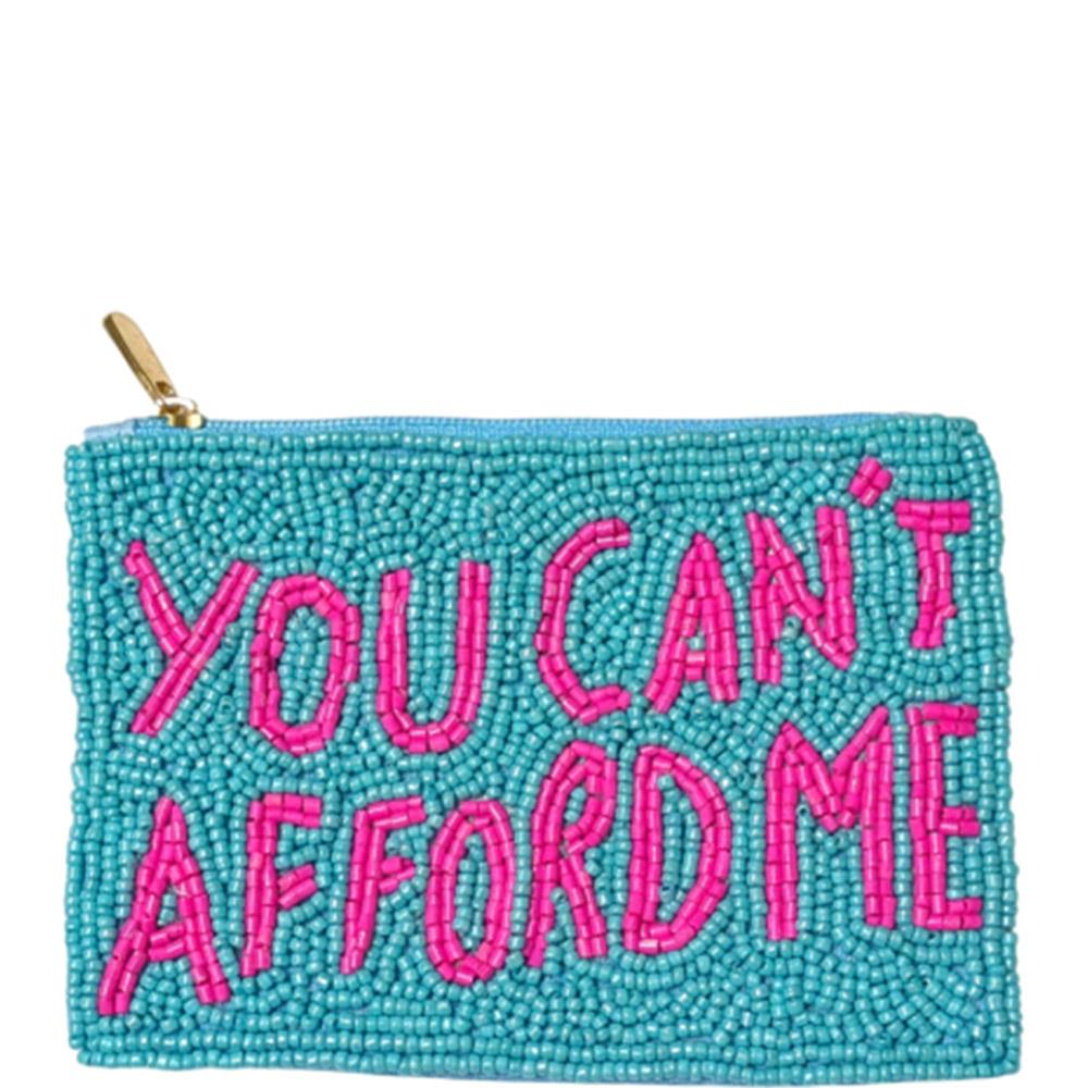 YOU CAN’T AFFORD ME TEXT GRAPHIC SEED BEAD COIN PURSE BAG