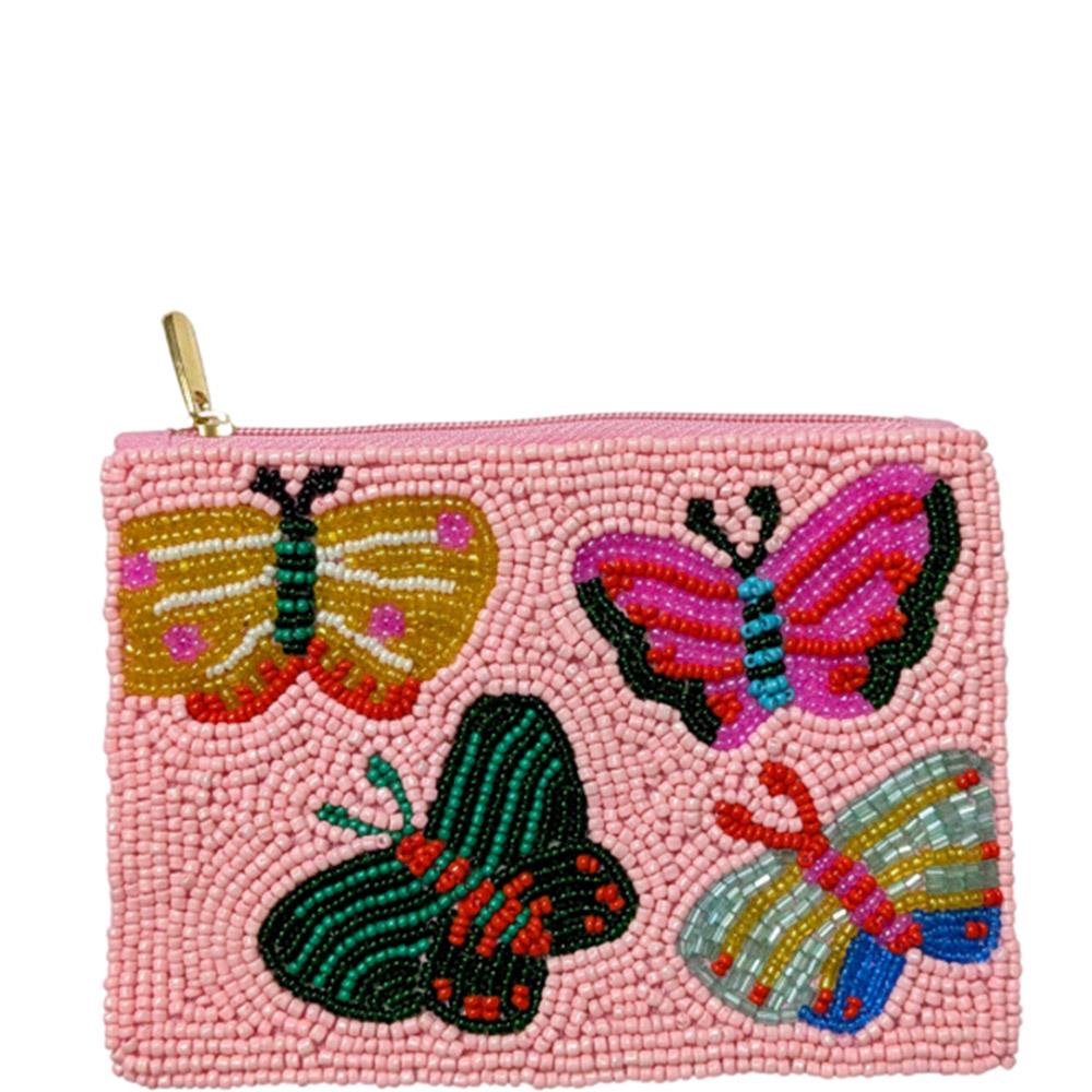 MULTI BUTTERFLY SEED BEAD COIN PURSE BAG