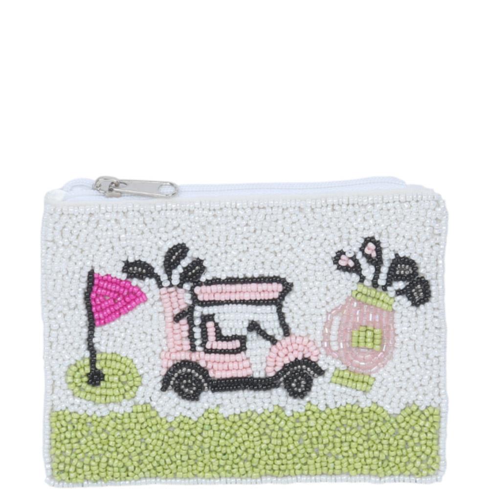 GOLF CART FLAG GRAPHIC SEED BEAD COIN PURSE BAG