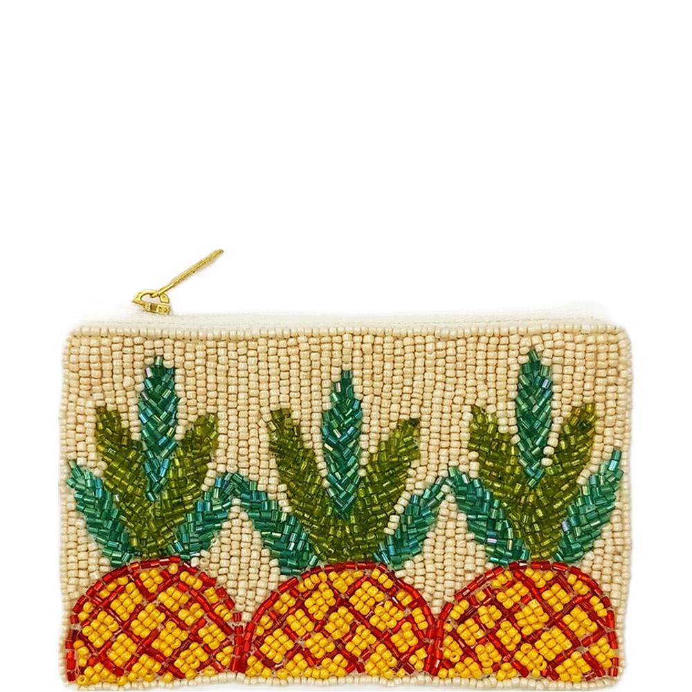 PINEAPPLE REPEAT GRAPHIC SEED BEAD COIN PURSE BAG