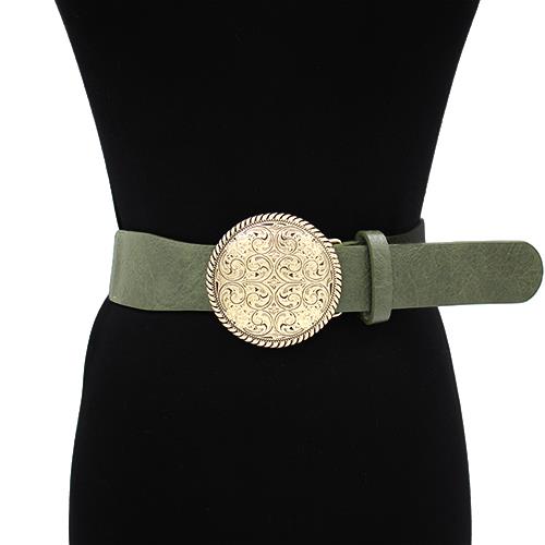 WESTERN PATTERN ROUND METAL BUCKLE BELT