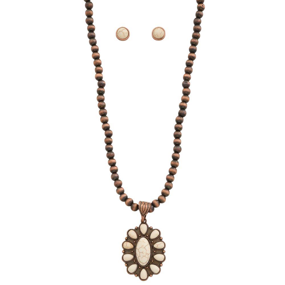 FASHION WESTERN STYLE STONE BEAD NECKLACE EARRING SET