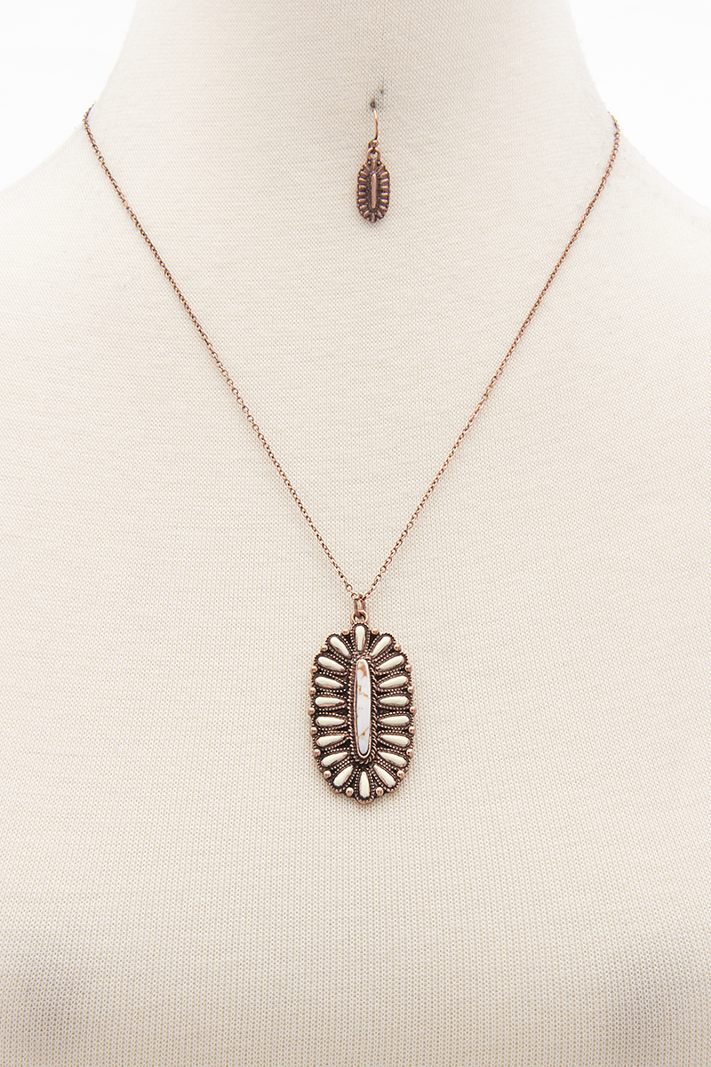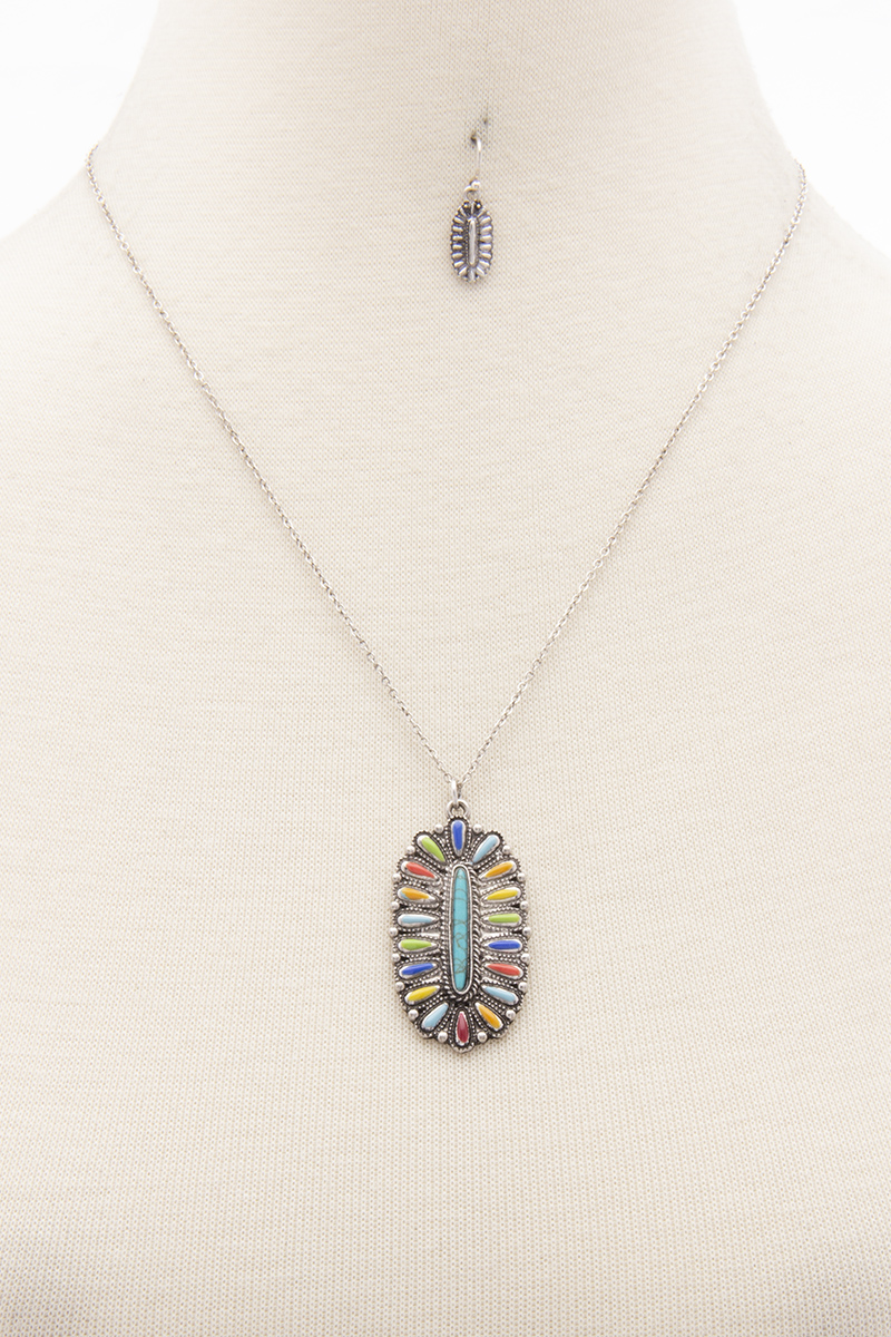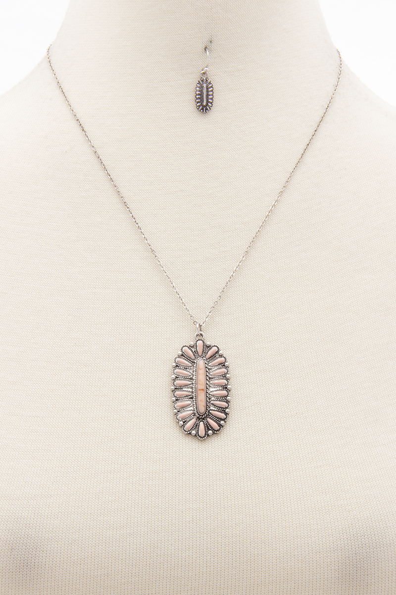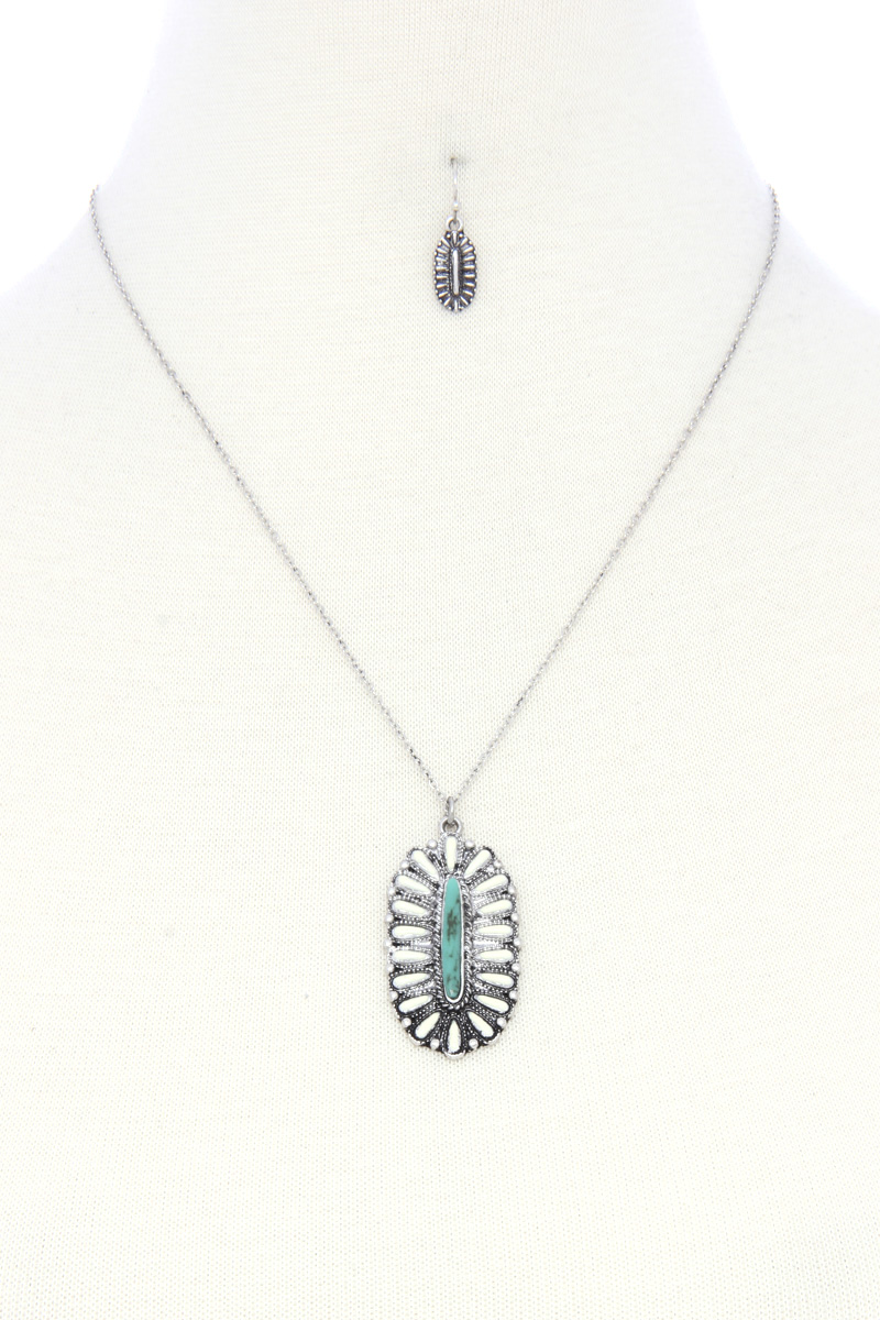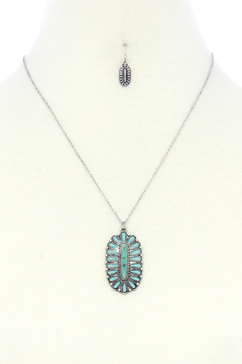 WESTERN FLORAL TURQUOISE STONE NECKLACE AND EARRING SET